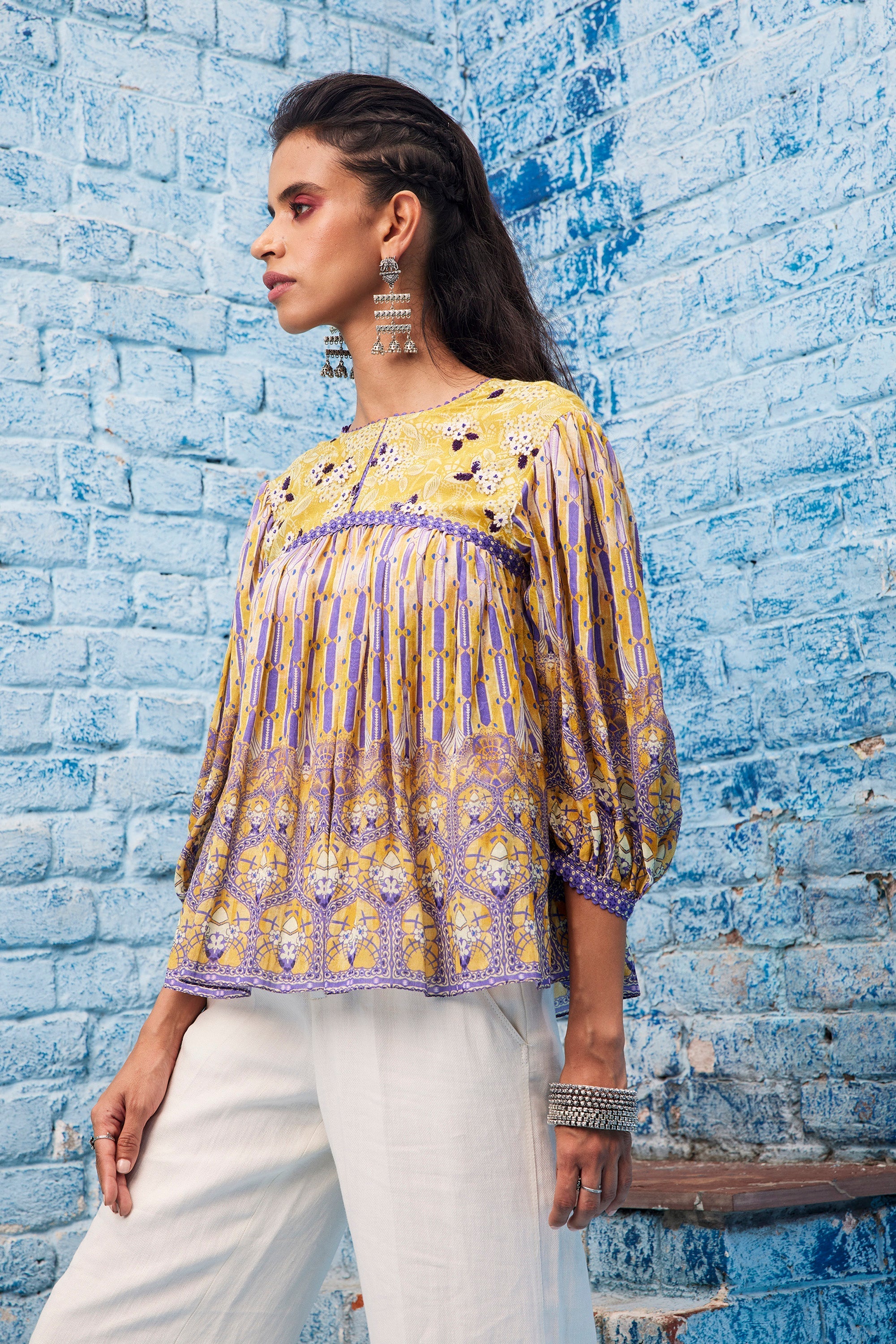 Vaunt away with this adaptable and dreamy top that encapsulates mellow and edgy prints.