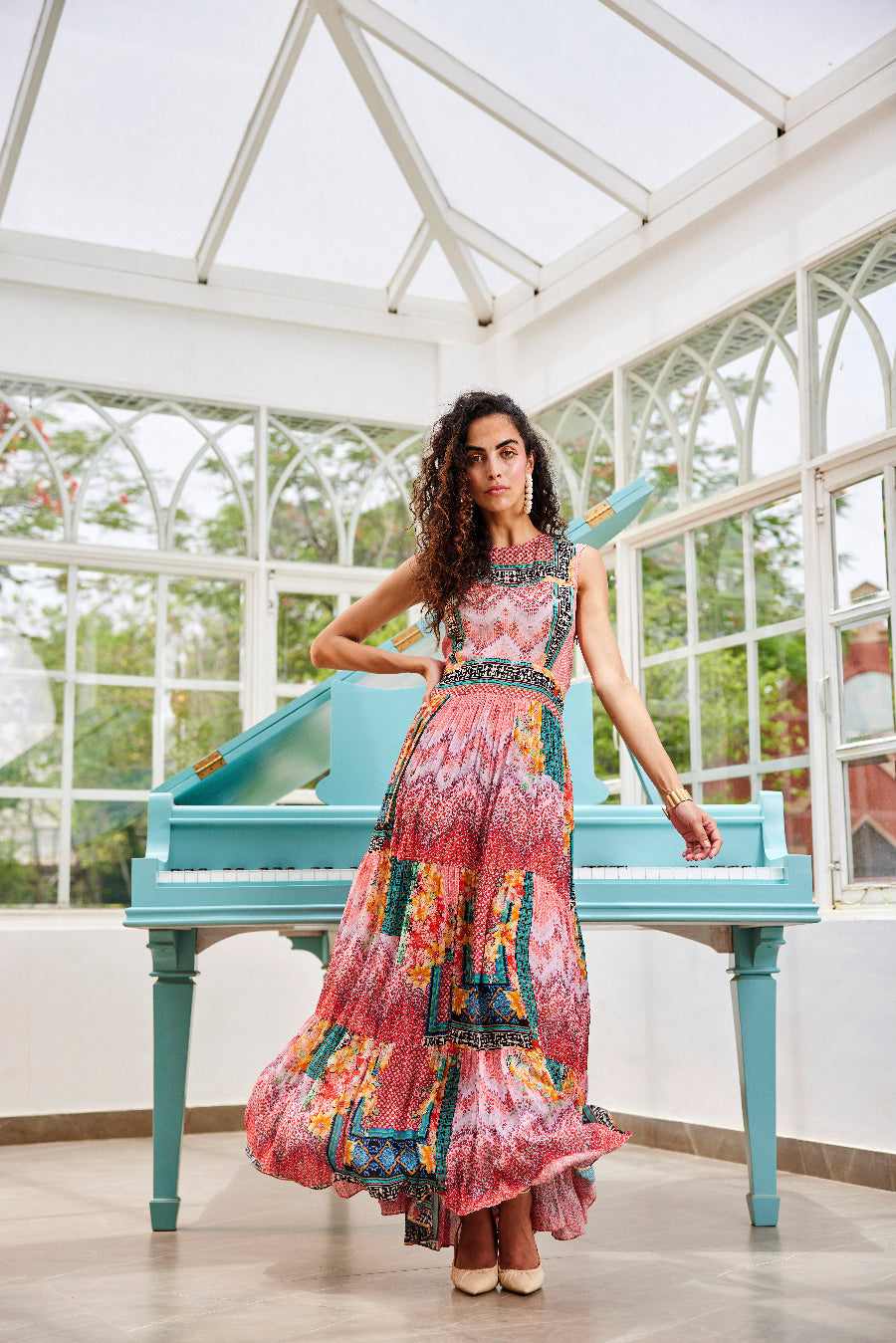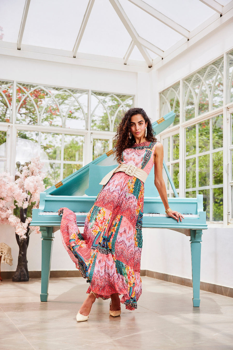 Delightfully Dreamy, This Sweeping, Boho-Inspired Maxi Features Beaded Embellishments And A Medley Of Abstract Motifs.