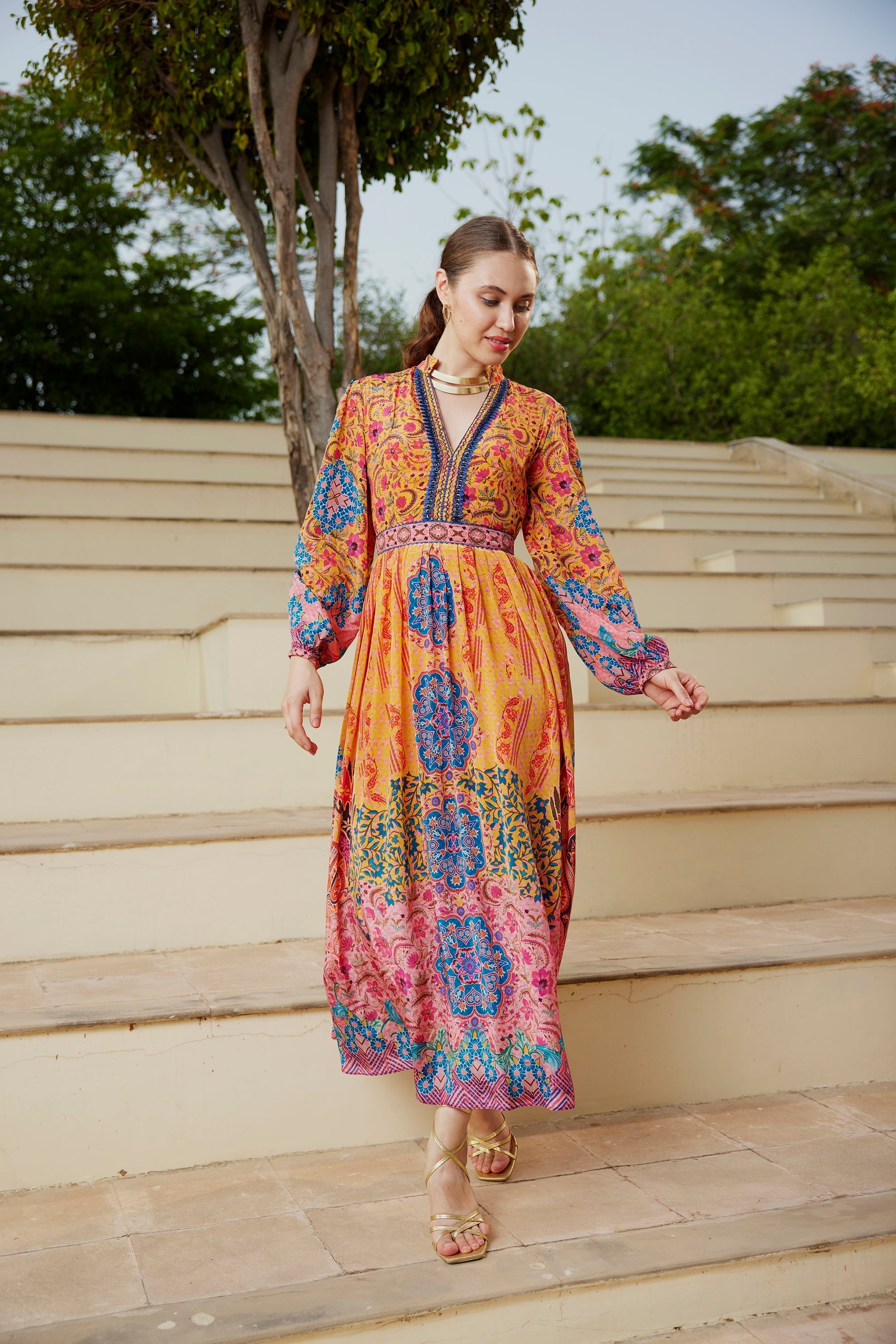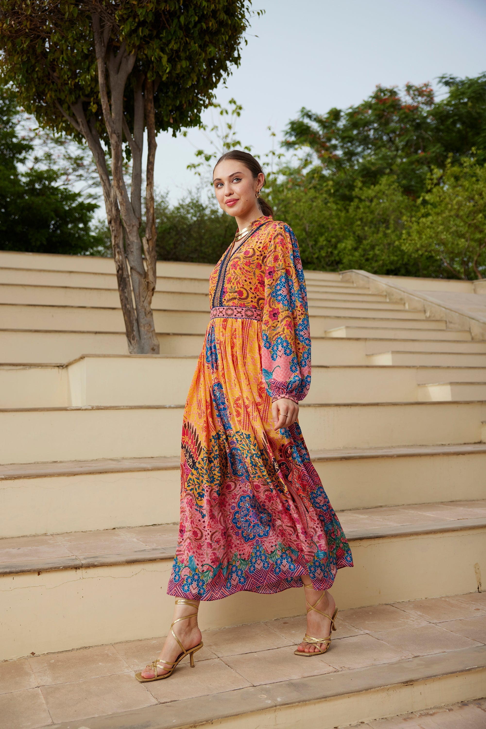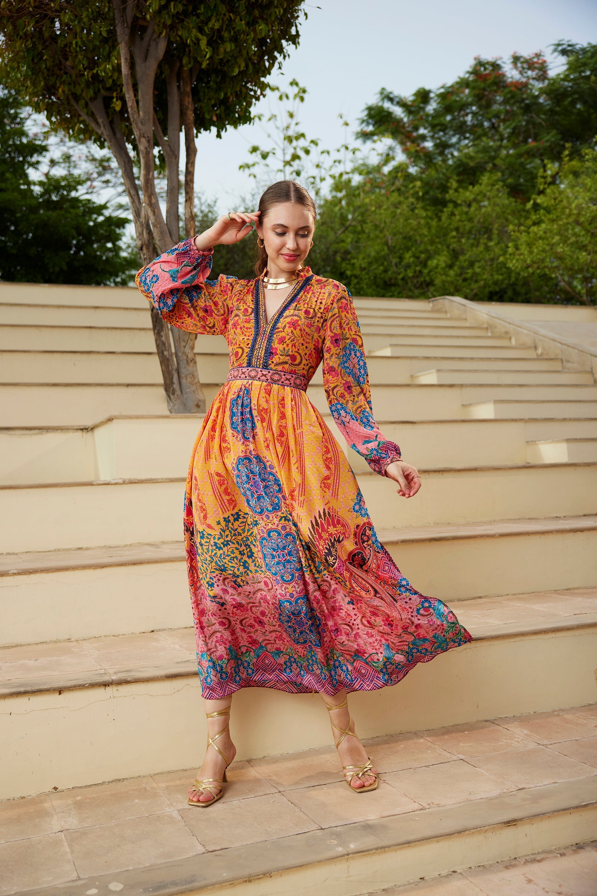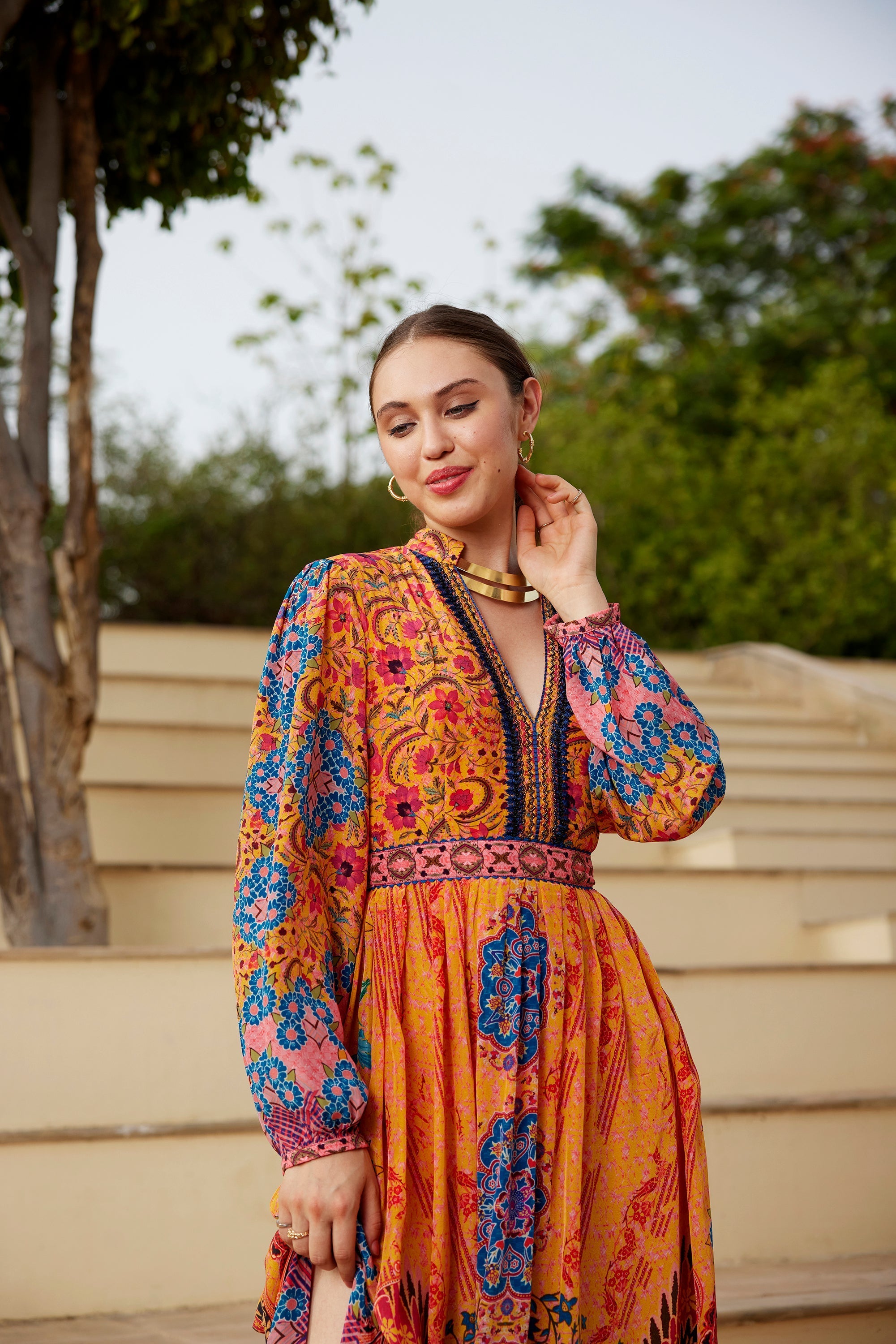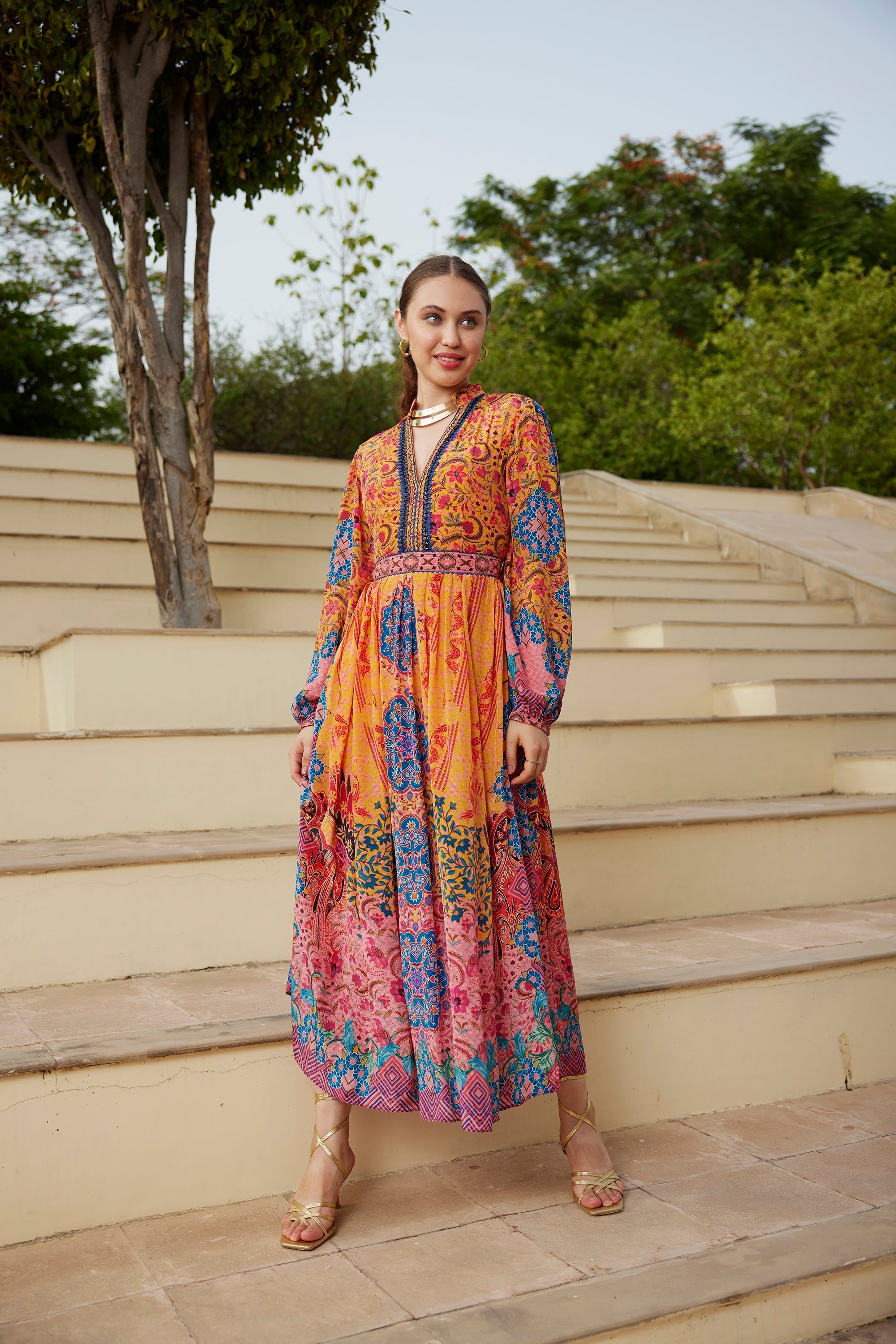Live your nostalgic-girl aesthetic with this warm-hued maxi dress.