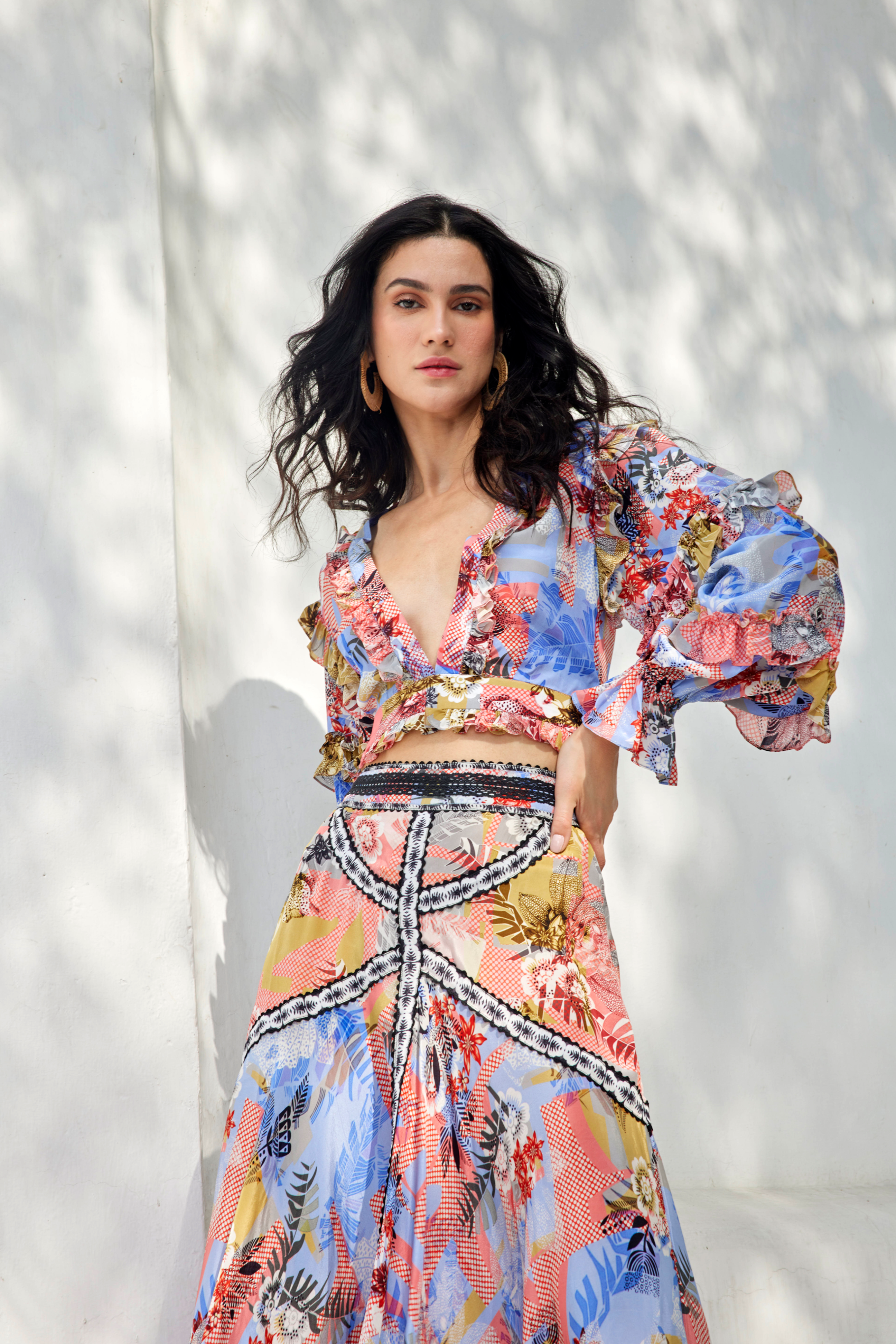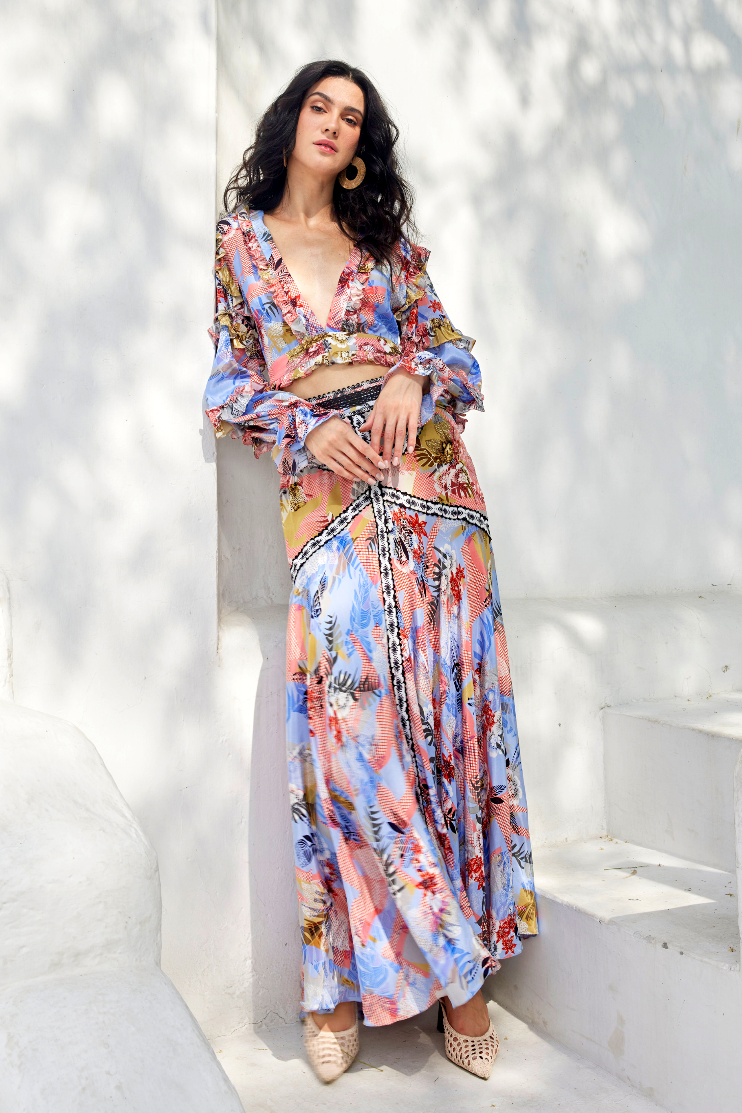 With a stunning abstract finish - this maxi skirt takes centre stage in any ensemble.