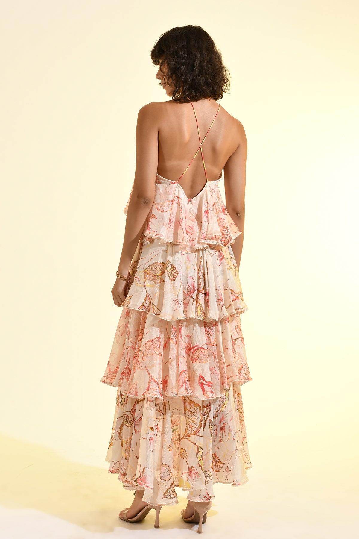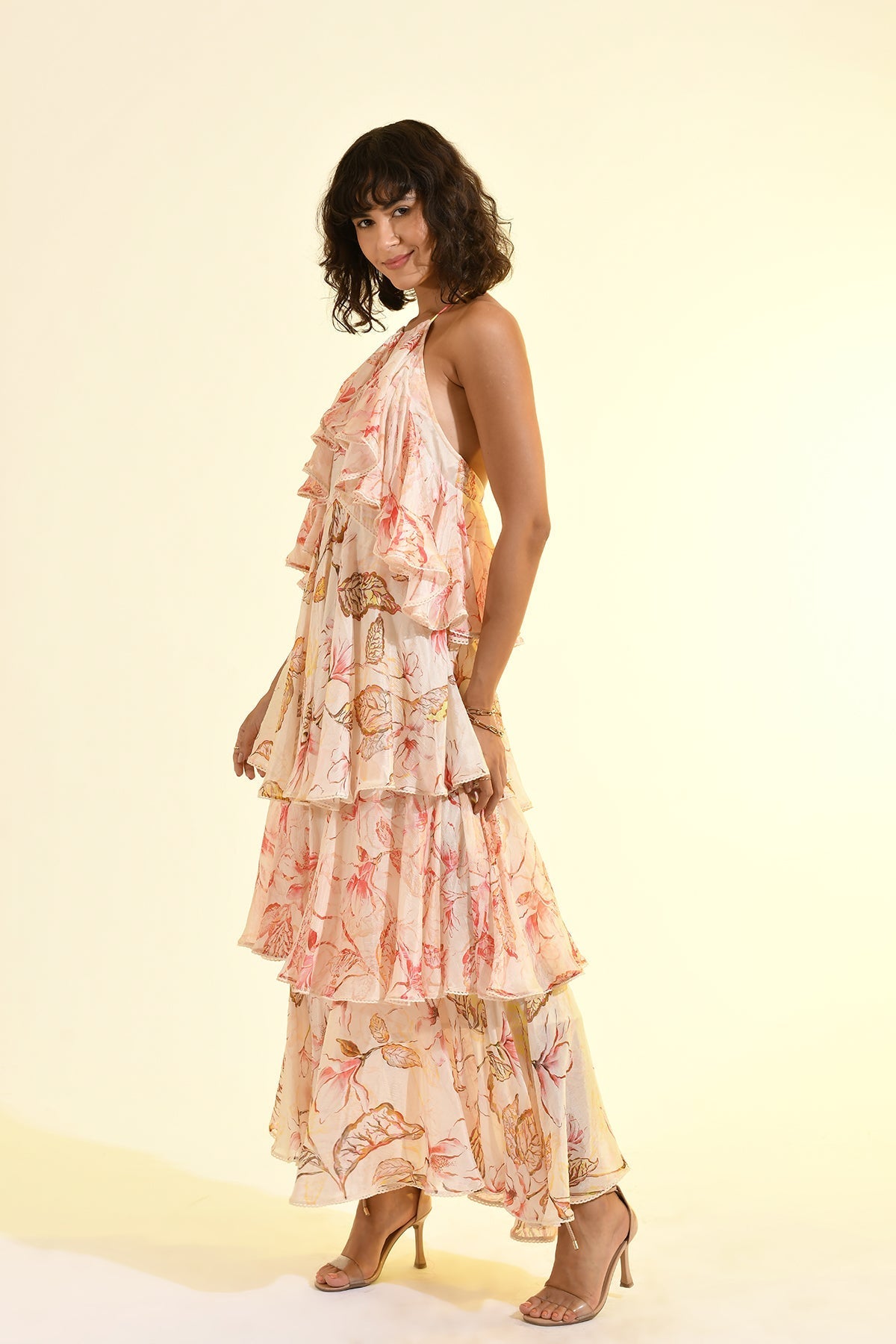FLORAL BLUSH HALTER MAXI DRESS
