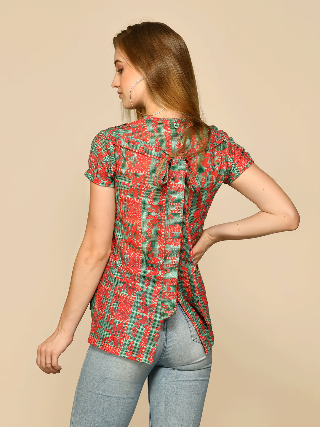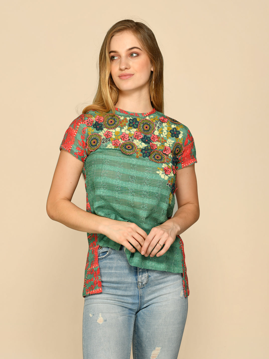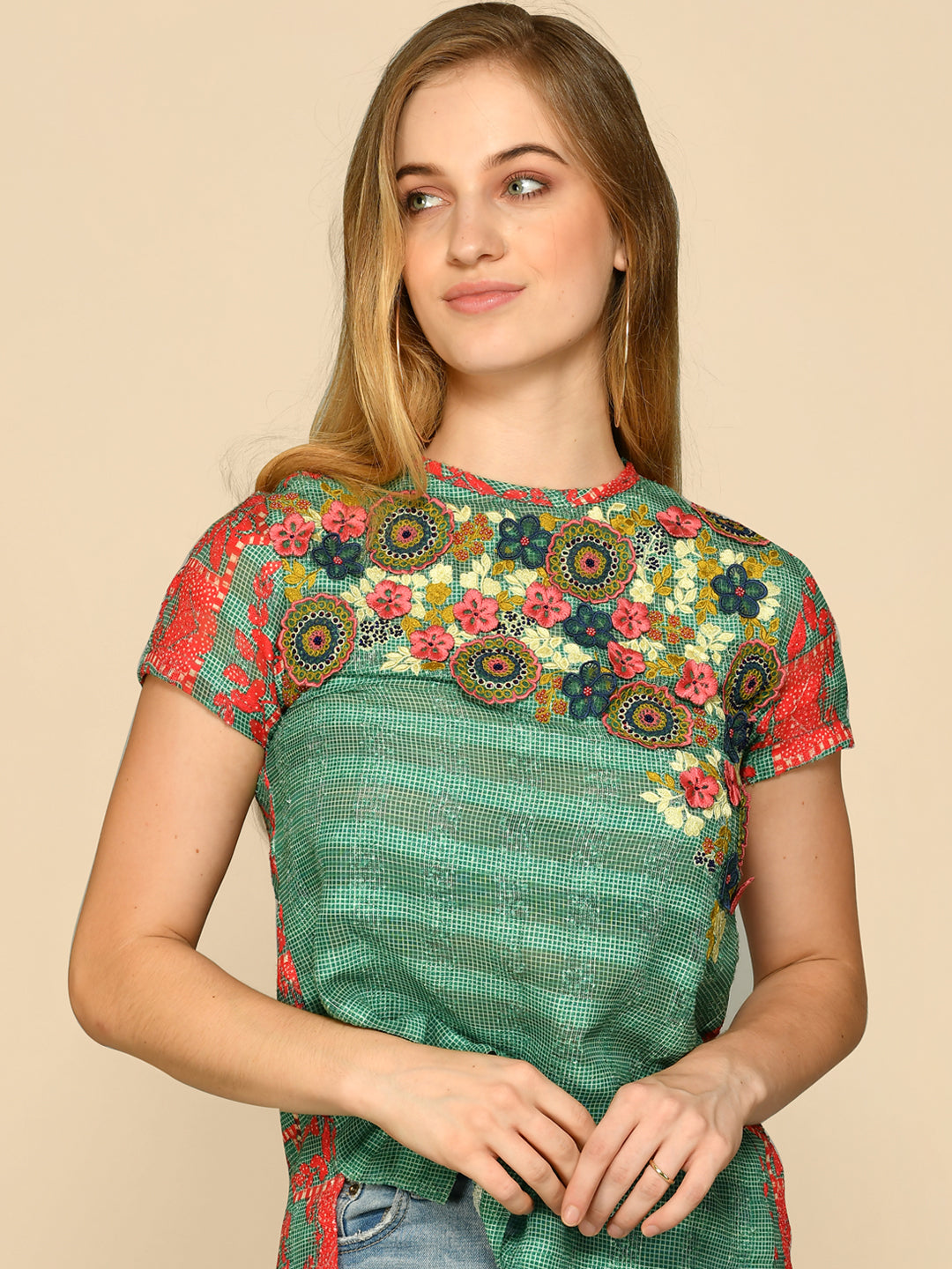 The Embroidered Mesh Top Features a Viscose Base With Elegant Placement Of Embroidery.