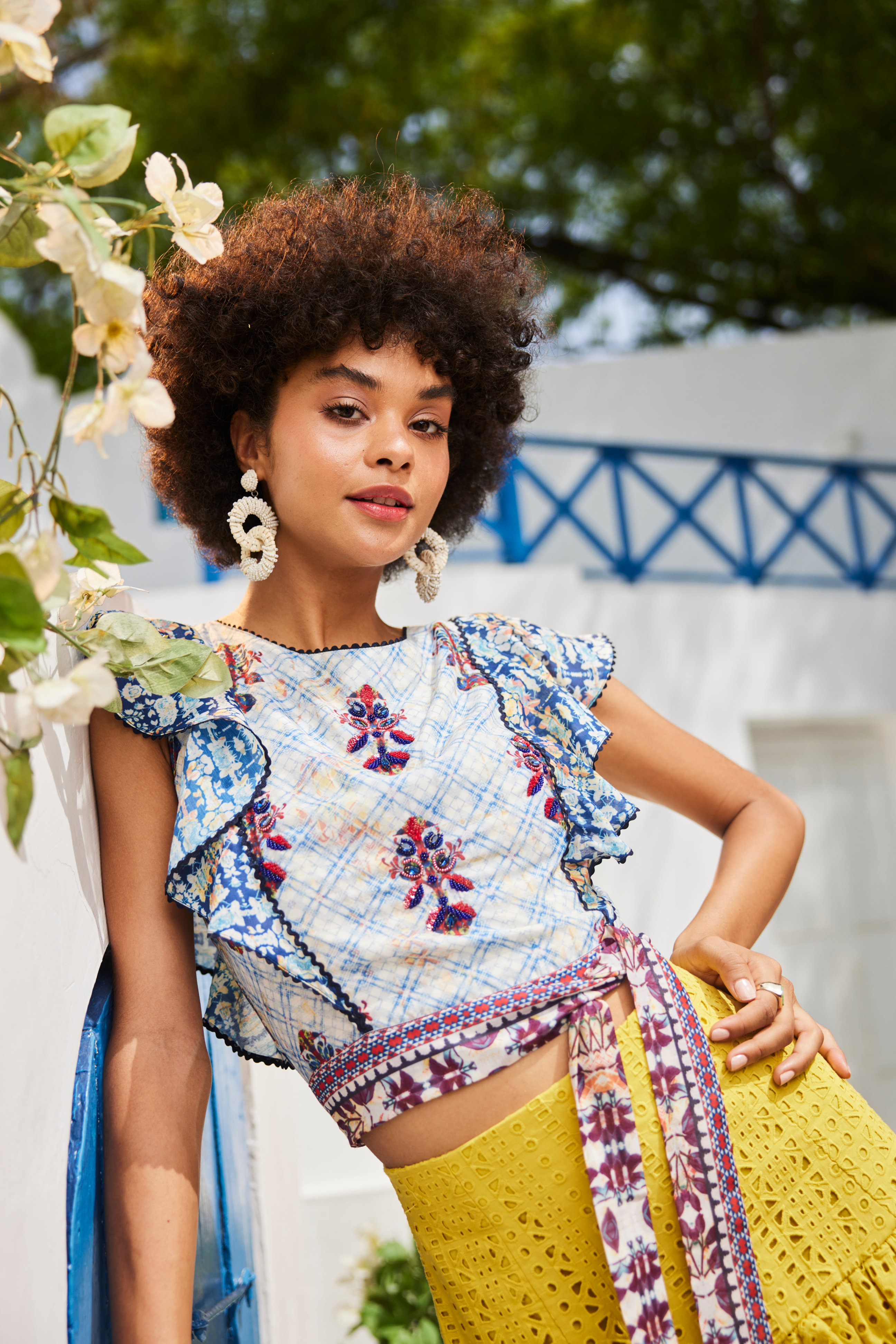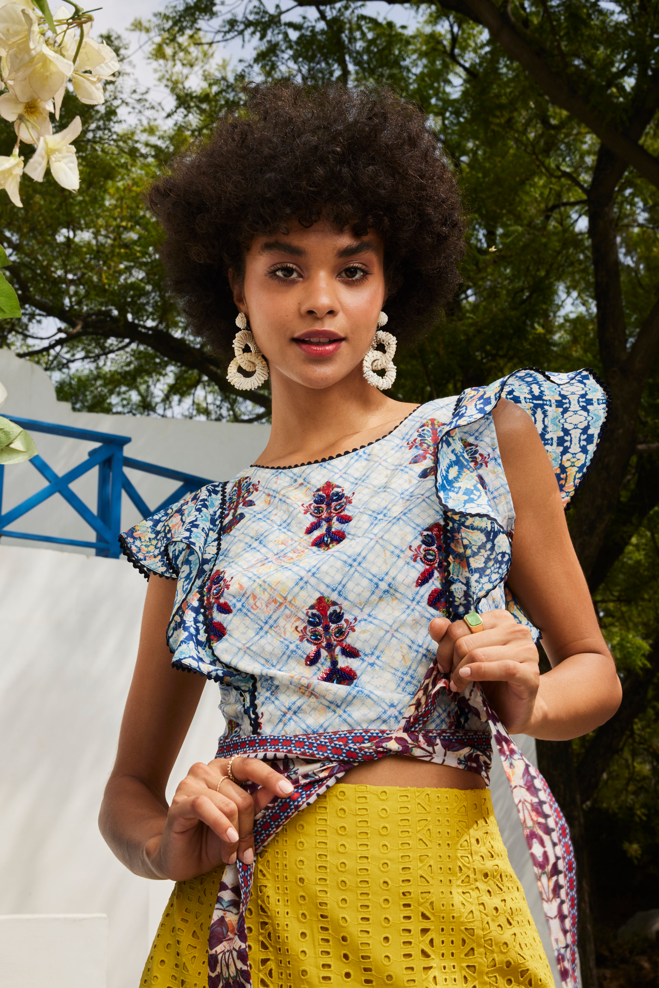 This Blue Printed Top has charming features and a fresh feel for the new season