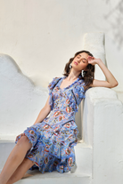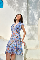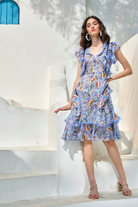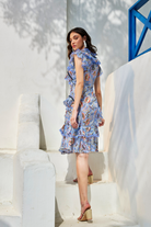 Gaze upon this blue hue featured with ruffle lines on the outer edges, displaying a flattering look for a day out or a vacation