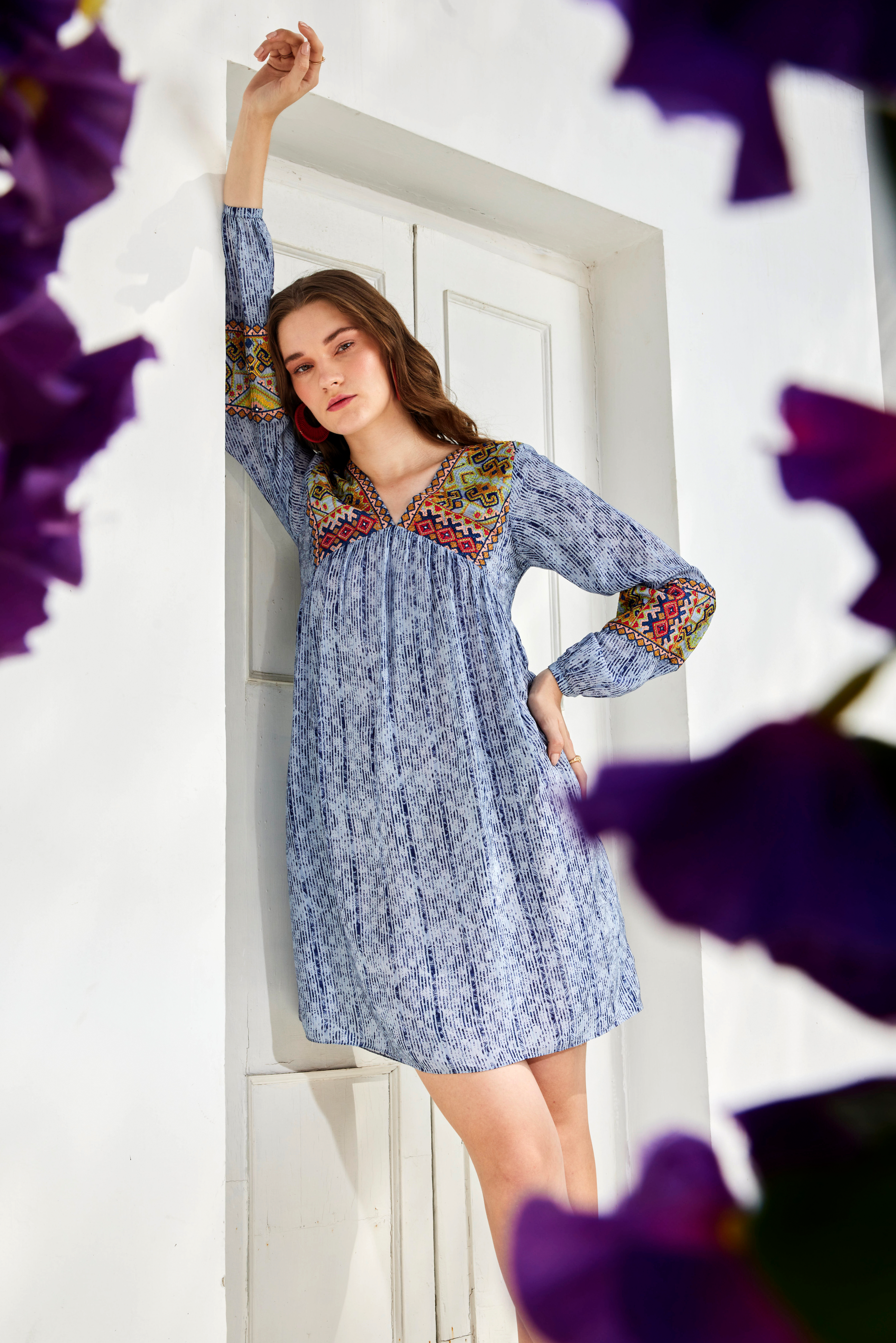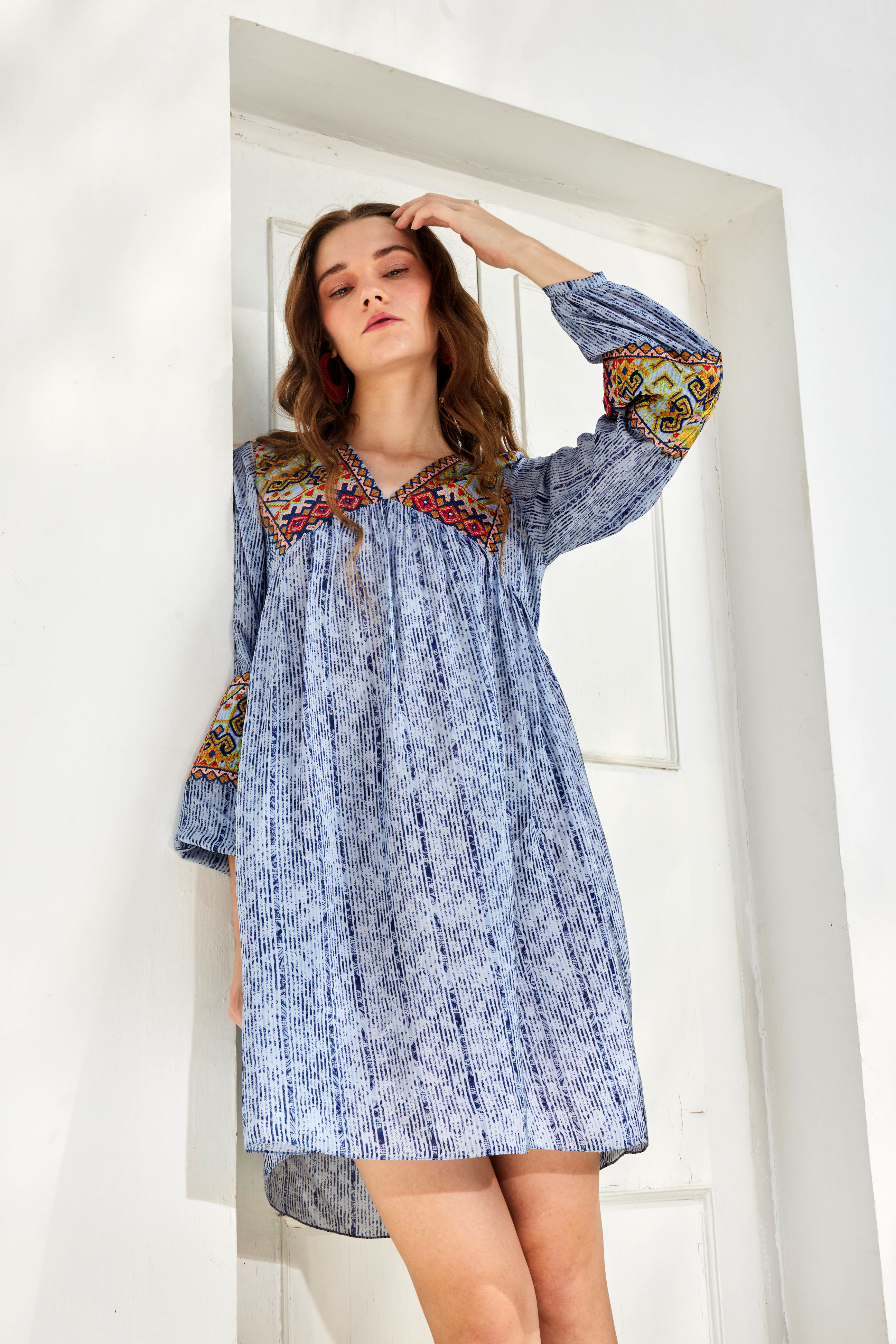 The Tunic Dress comes with an ethereal work of art on the neckline and sleeves with all over print, to give you a chic look