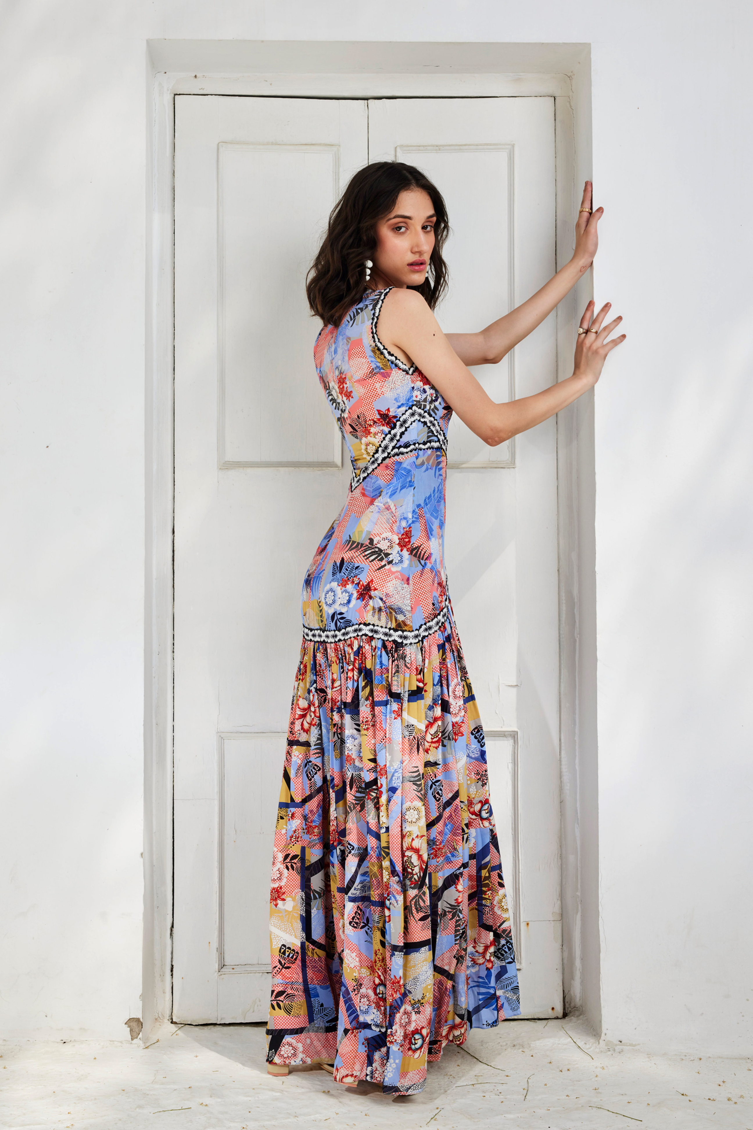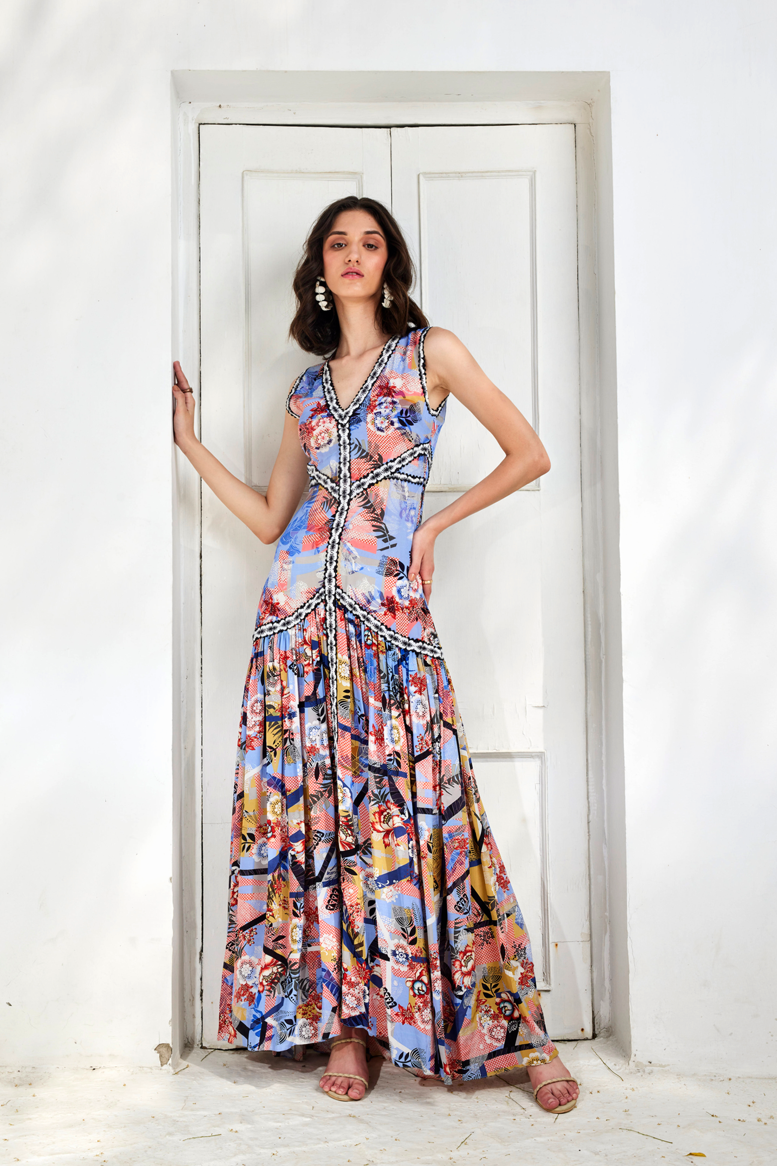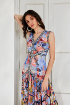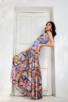 The Color Invert Maxi Dress features fit-and-flare style floral print defined with elegant cuts.