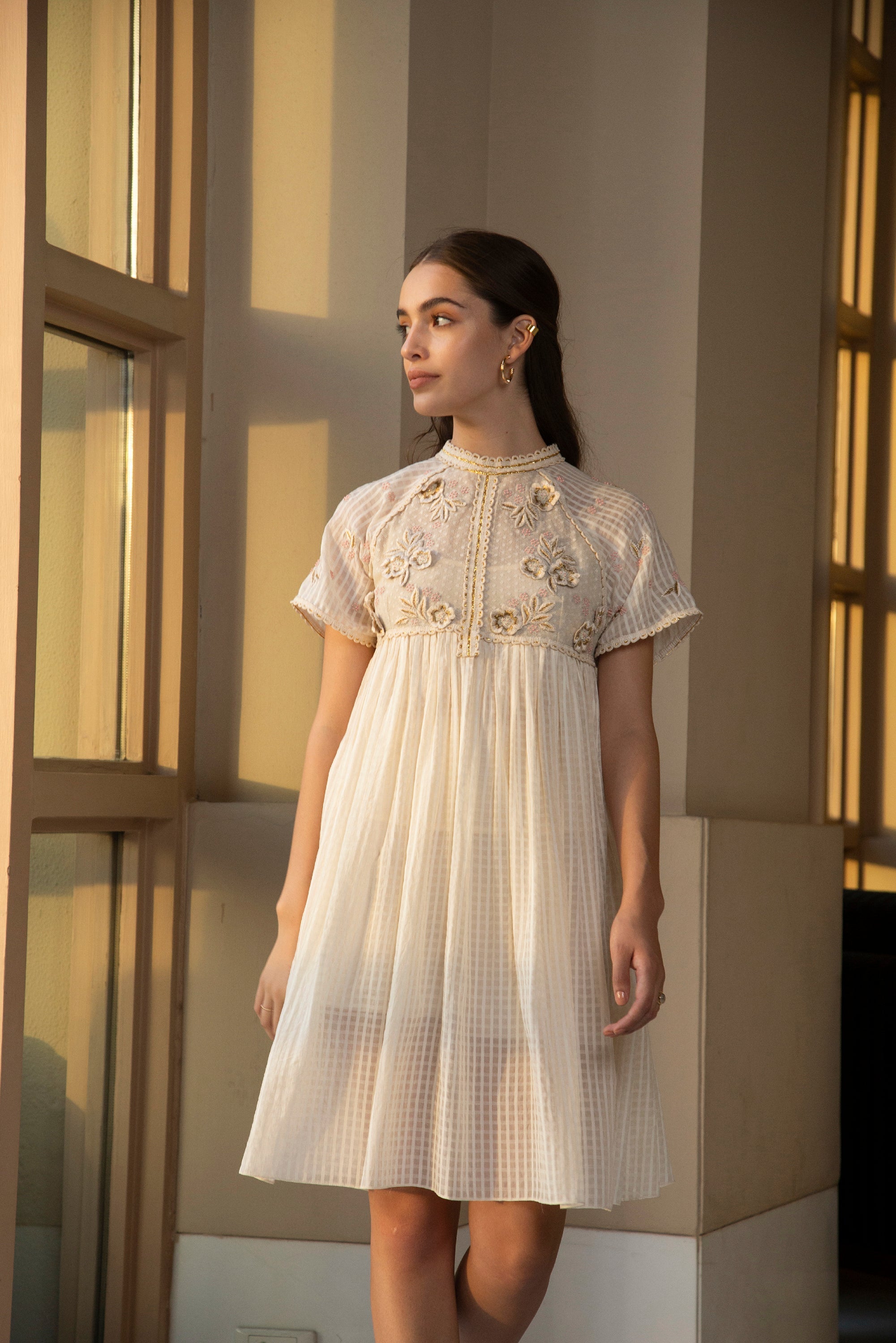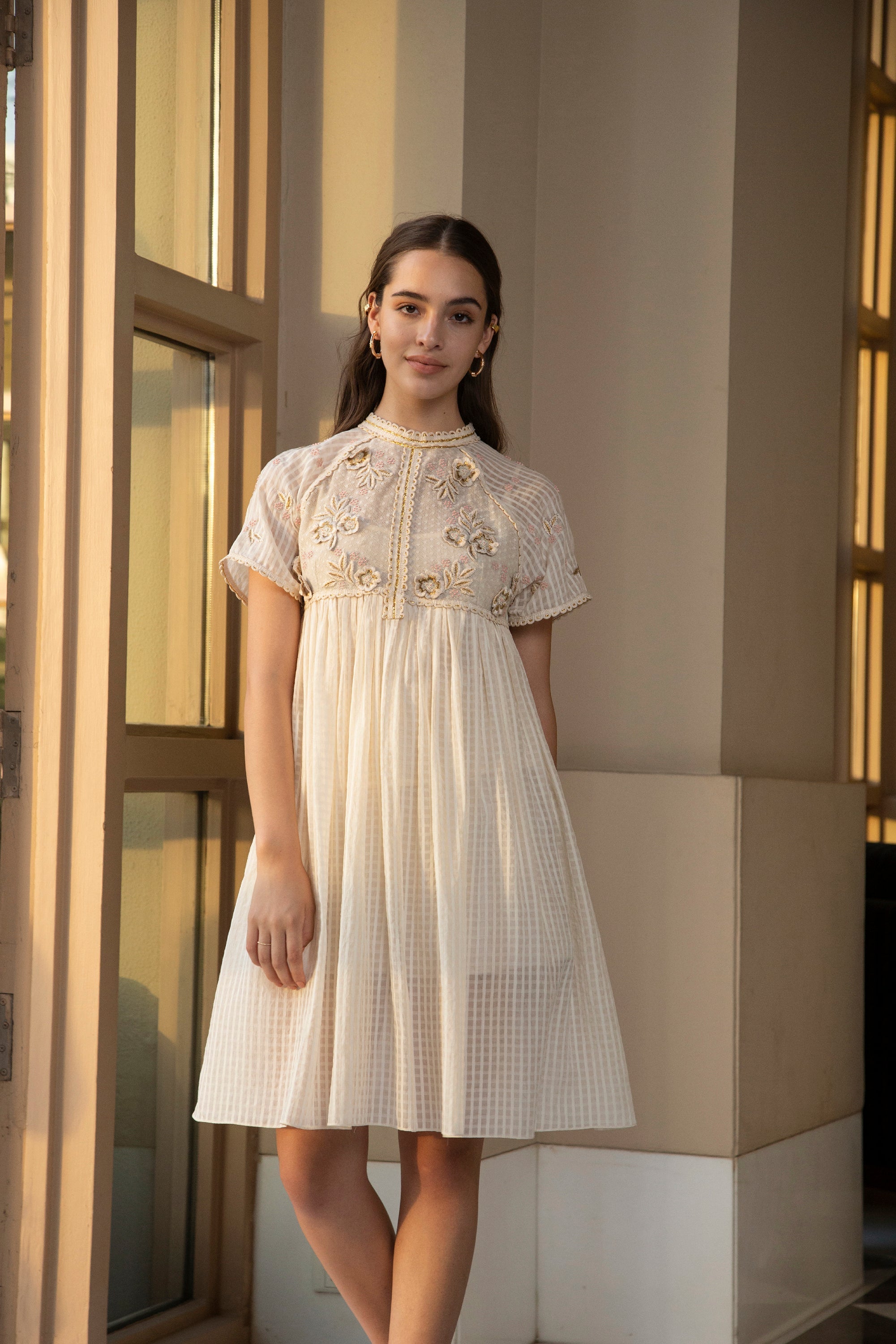 Embody This Flattering Embroidered Tunic Featuring A Fit-And-Flare Shape And Contoured Panels.