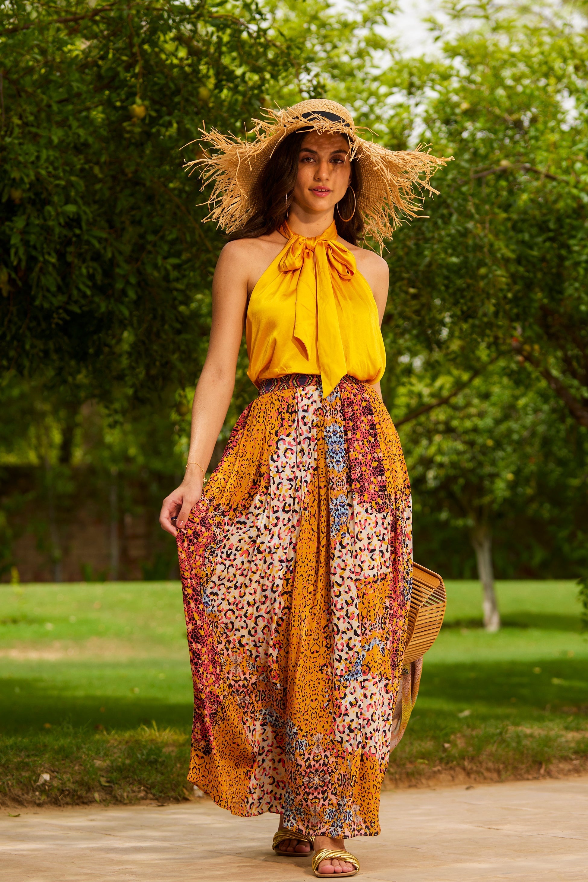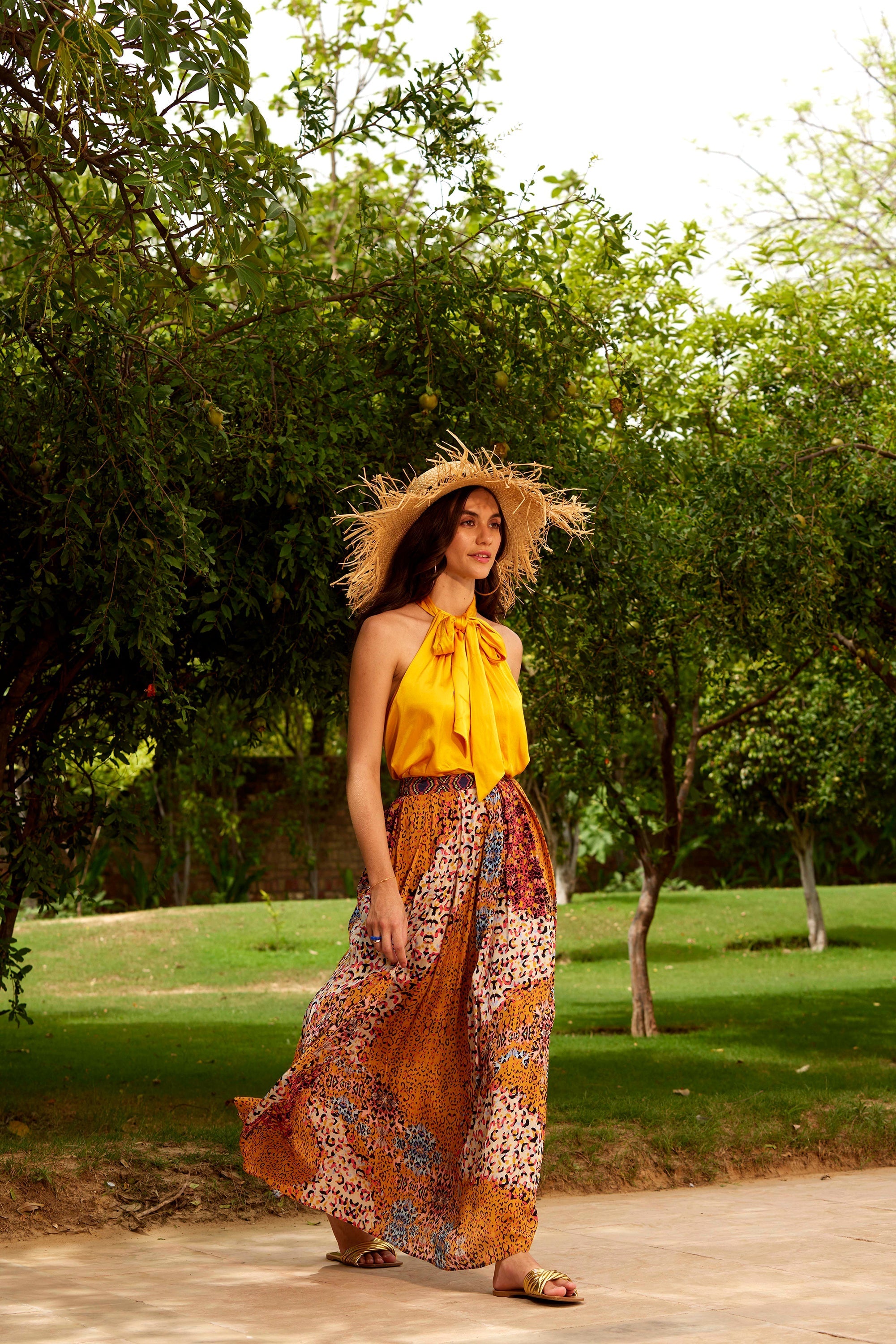 Adorned With A Melange Of Eye-Catching Animal Print, This Pleated Skirt Is A Wearable Work Of Art