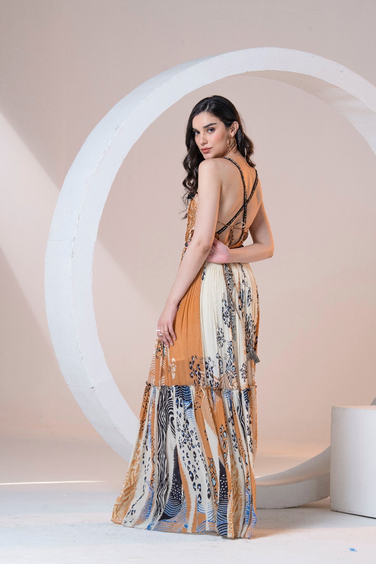 Timeless sophistication with a wide-brimmed hat and flowing fabric