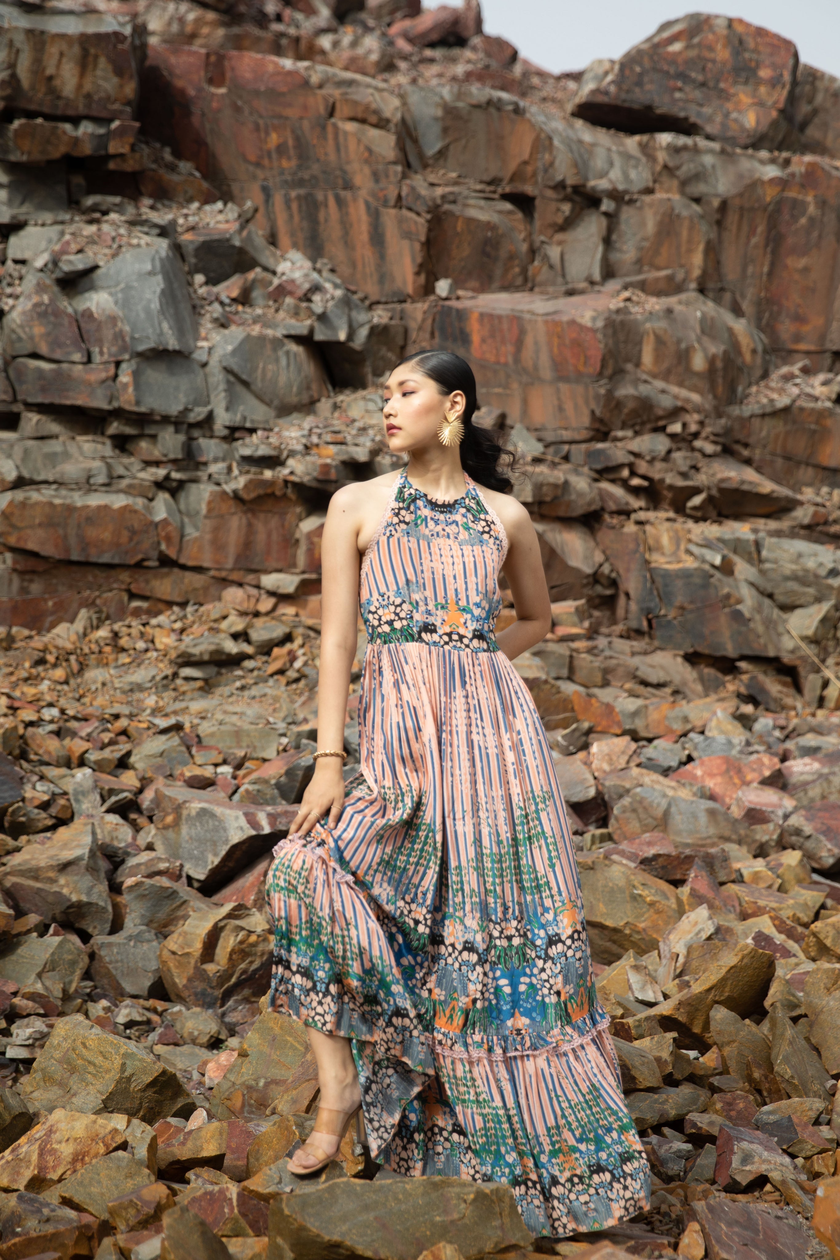 Experience The Ultimate Fusion Of Comfort, Style, And Functionality With The Striped Tiered Maxi Dress