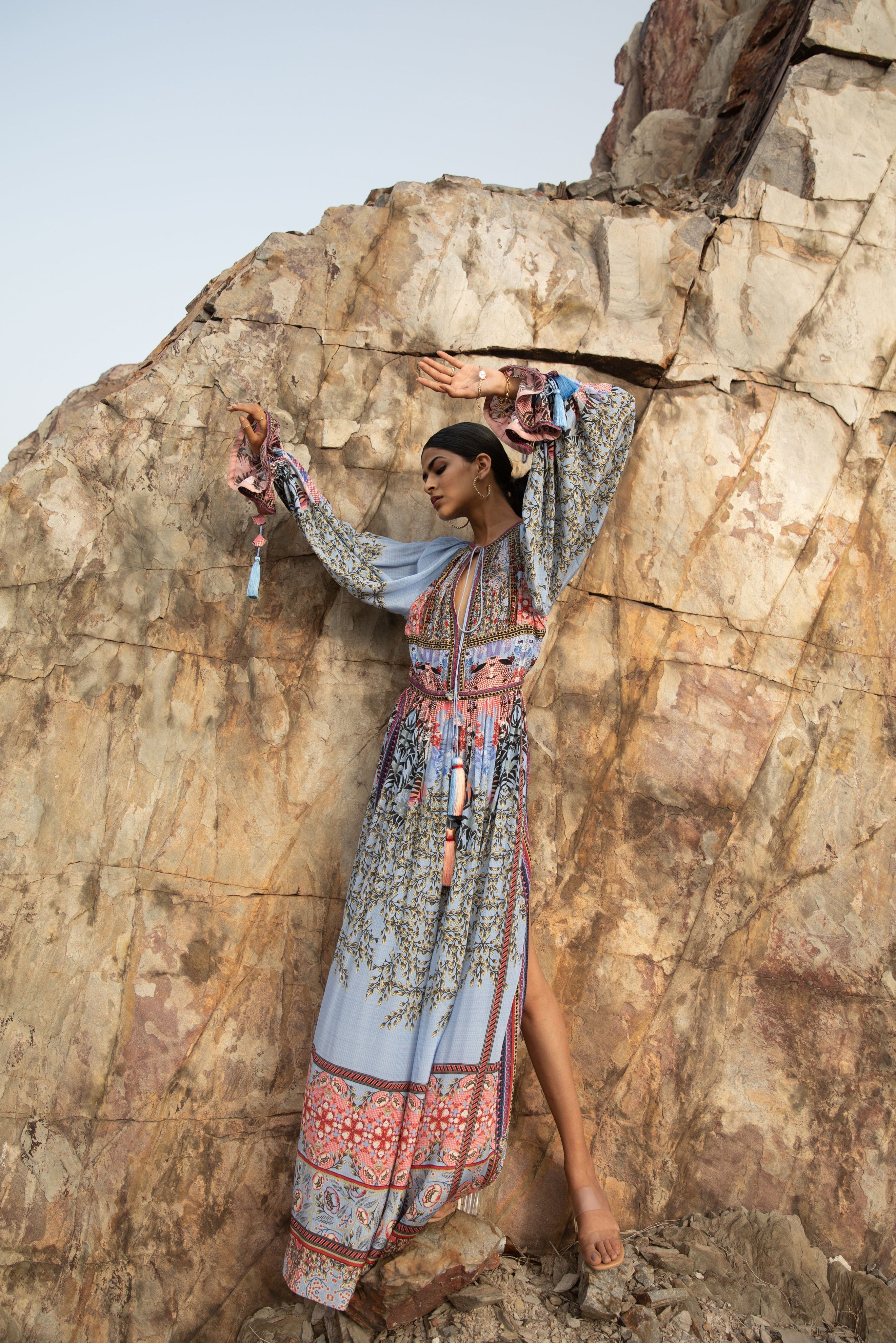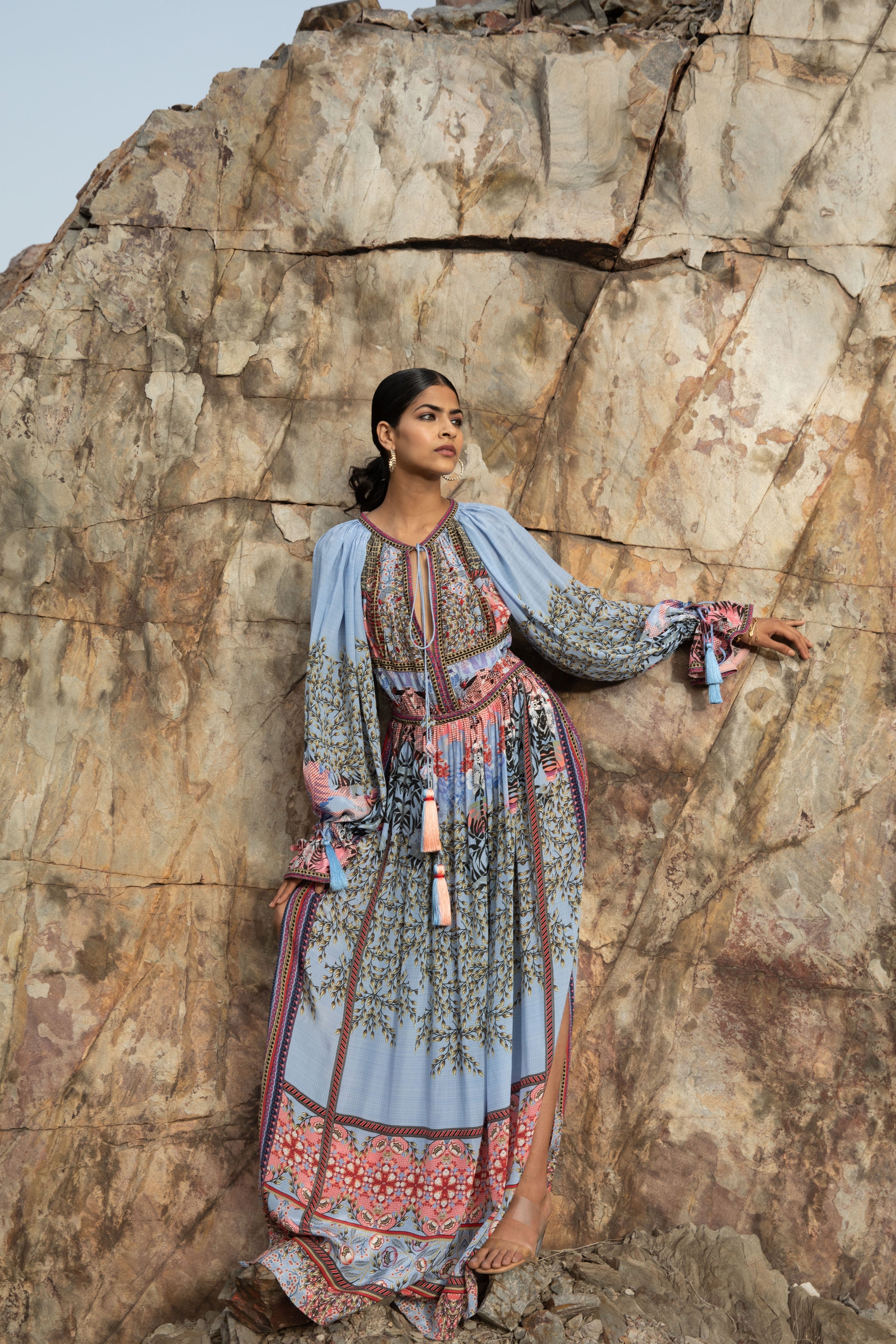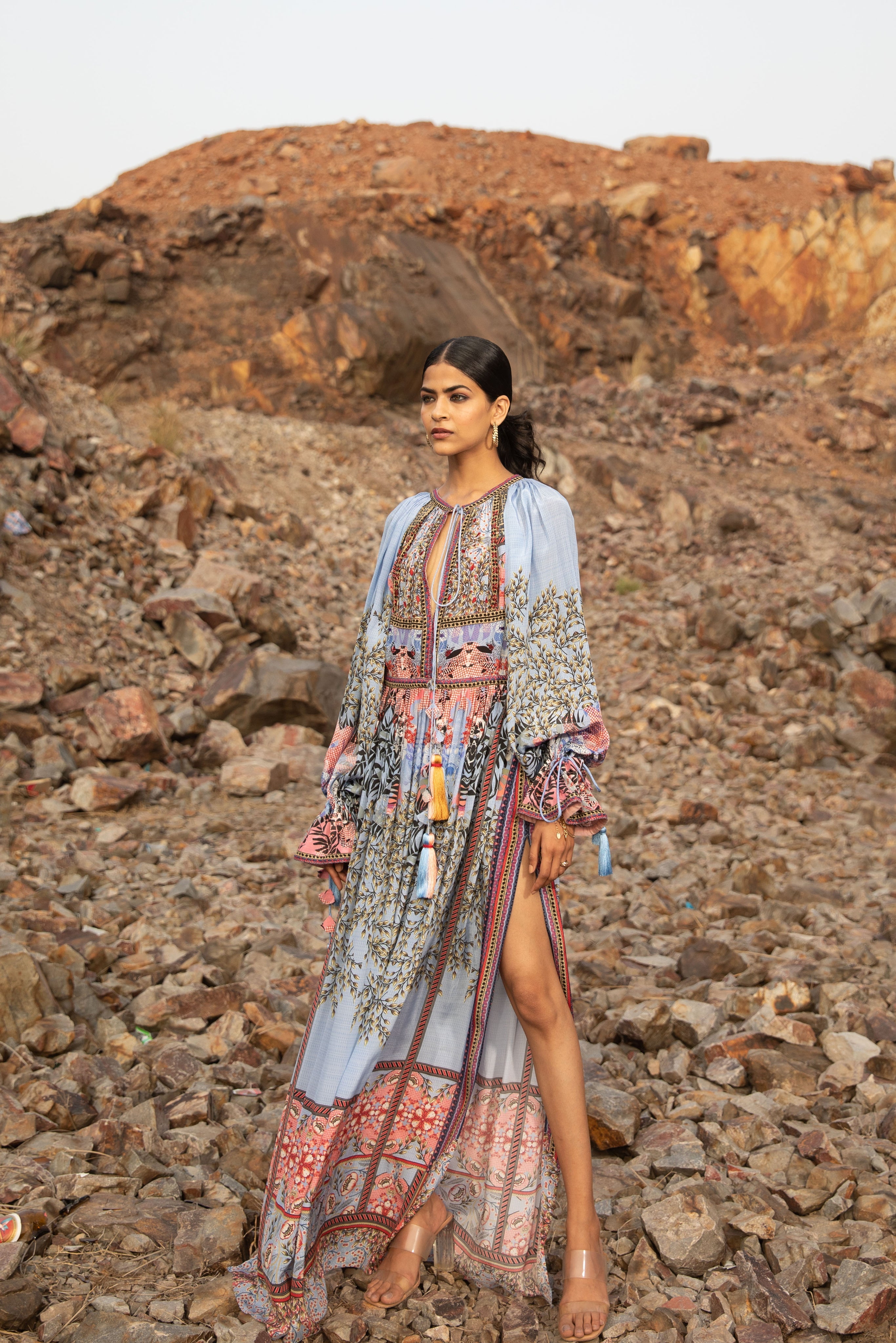 The Florid Indigo Slit Maxi Dress Speaks With Splendor