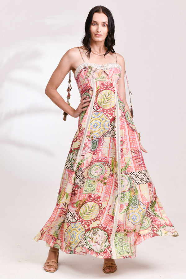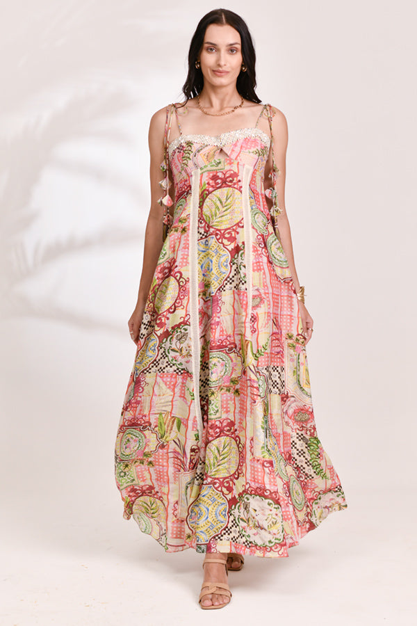 The Roselle Drift Dress is a delicate blend of soft color and fluid movement, inspired by blooming gardens and sunlit days.