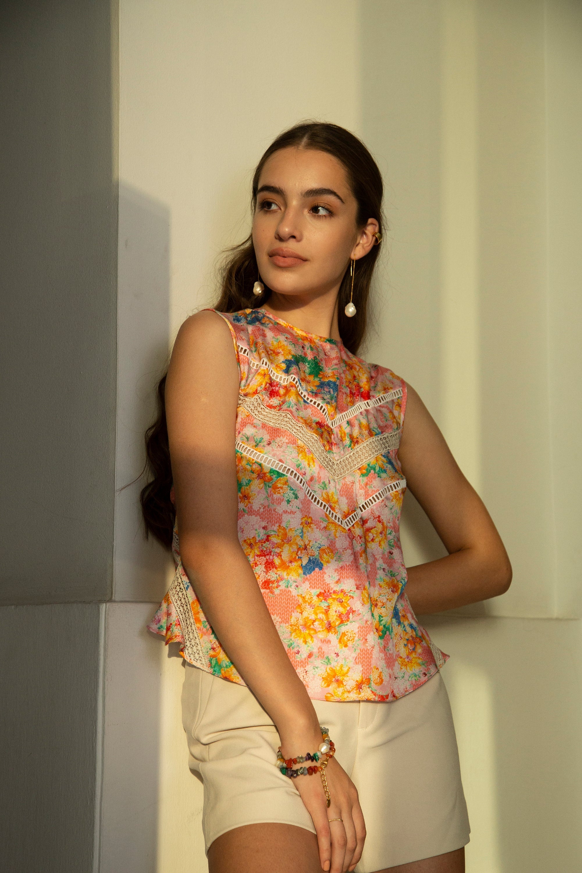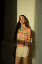 Das Blossom Top bringt Ihnen die Liebe zu lebendigen Farben, konzeptionellen Drucken und femininer Schneiderkunst