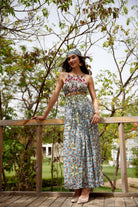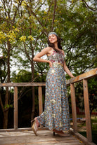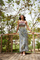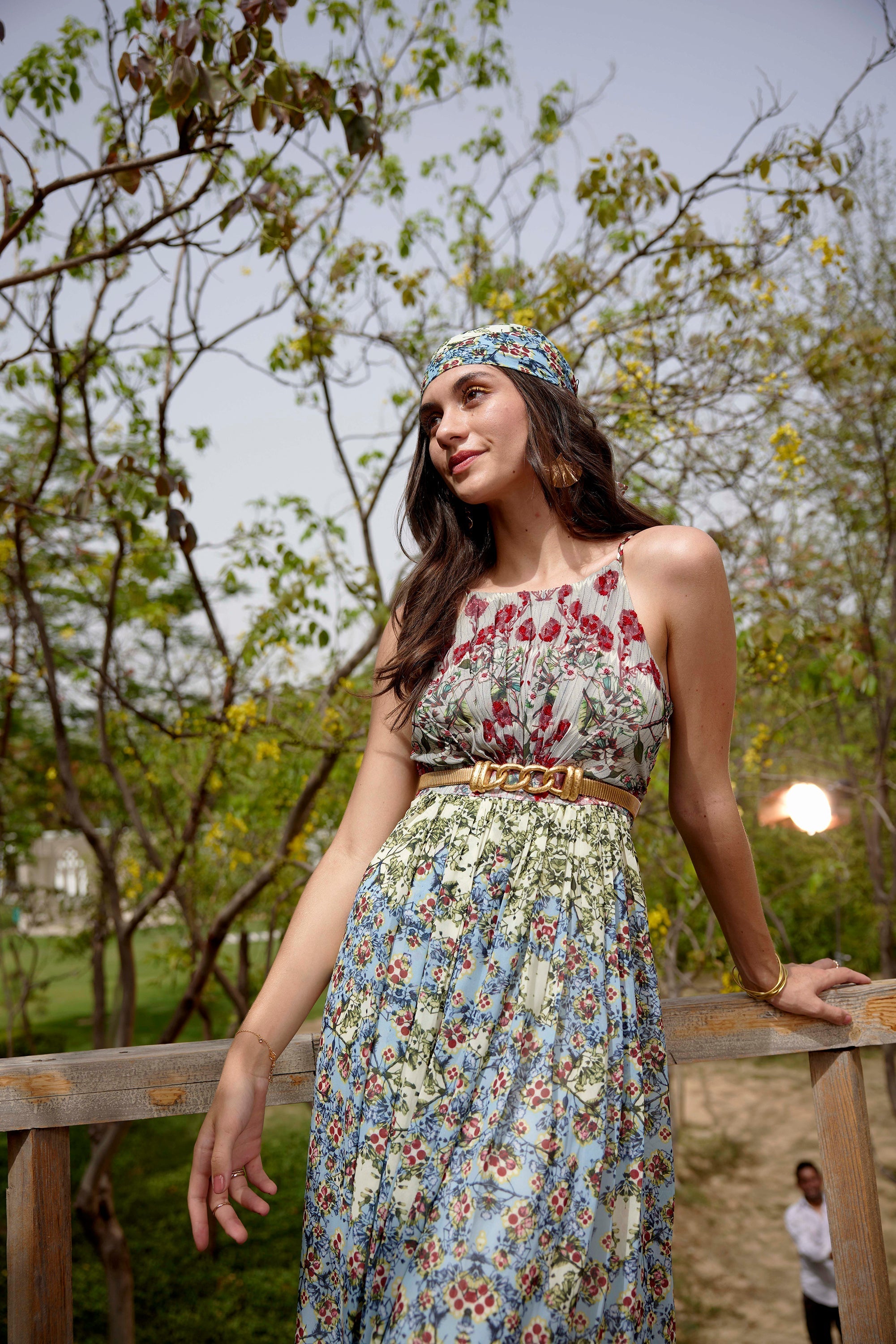 Ein helles, geblümtes Maxikleid mit geraffter, figurschmeichelnder Taille passt zu einem sonnigen Anlass.