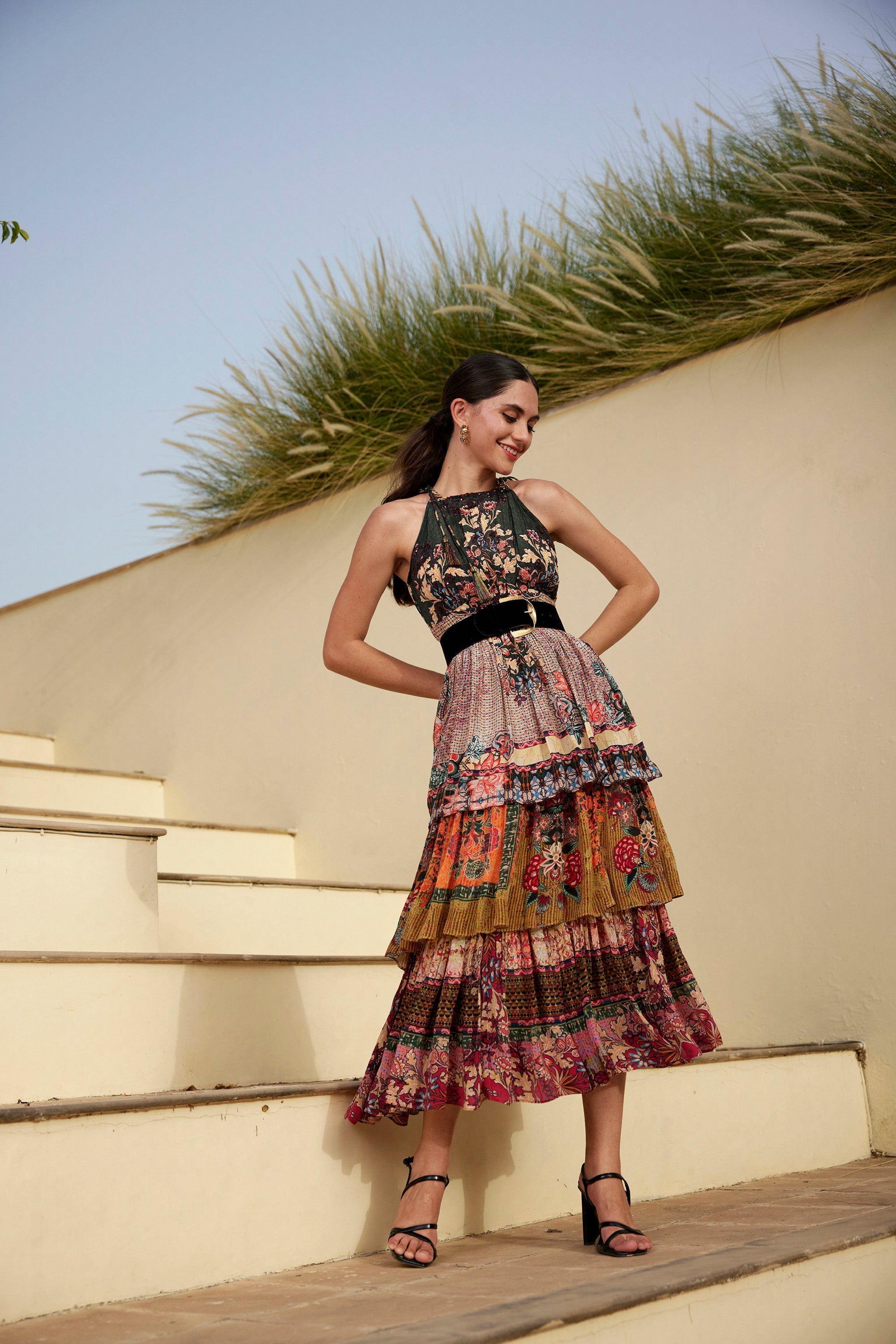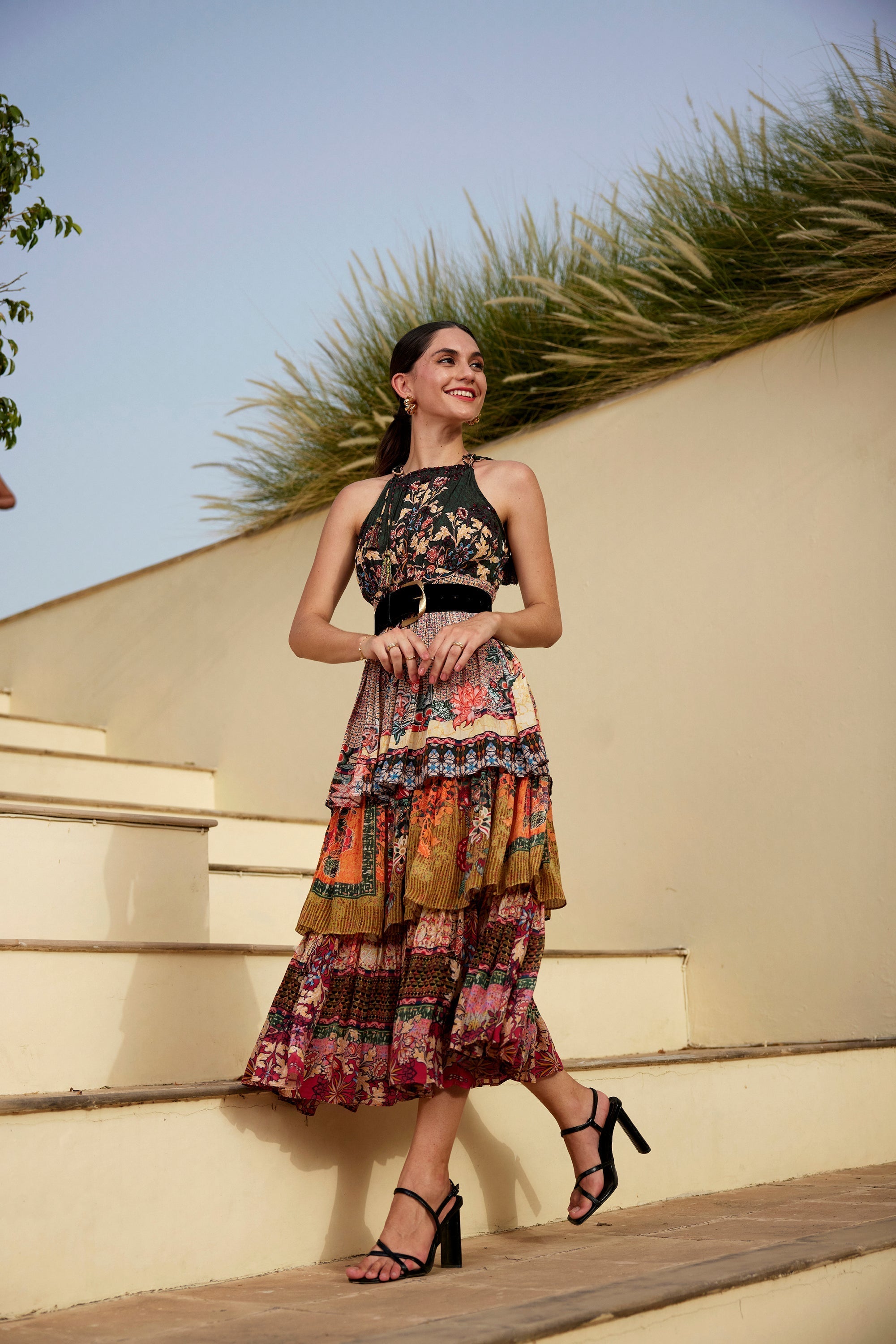 Boasting Various Sides Of Vibrant Designs, This Meadow Halter Maxi Dress Puts Your Style In Spotlight In Every Unique Way