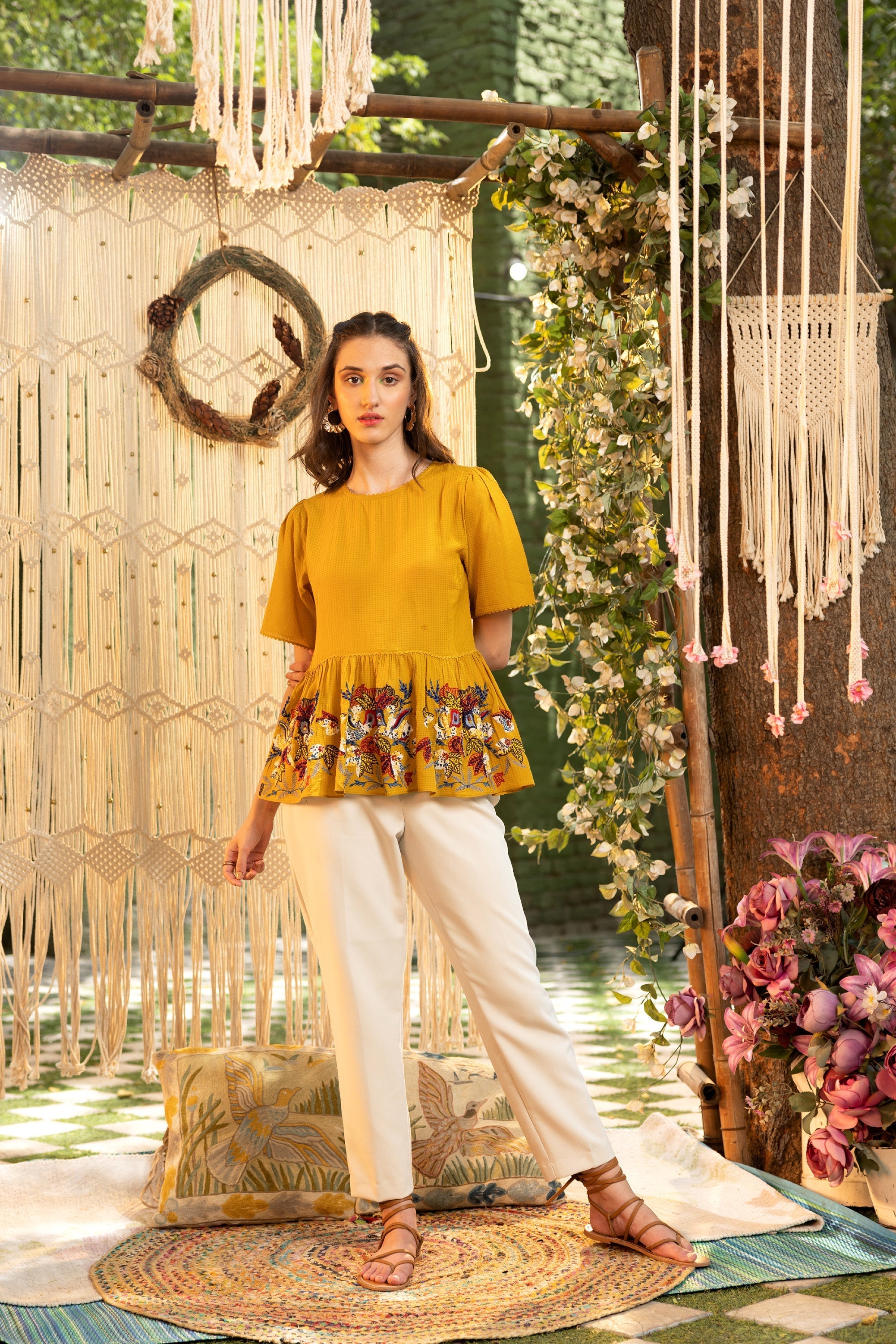 Delicate Beadwork Interwoven With Bright Embroidery Enlivens This Flattering Skirted Top.