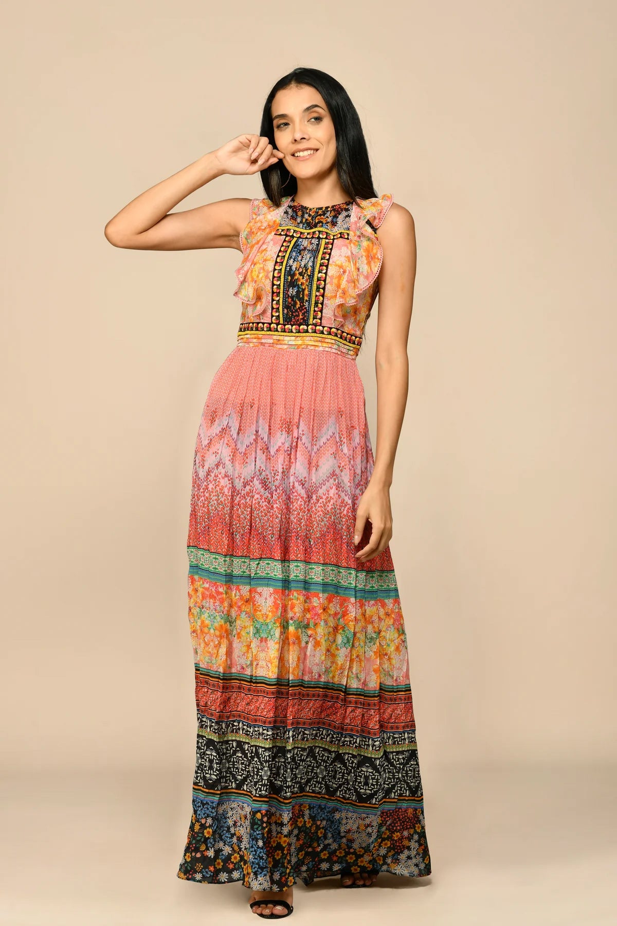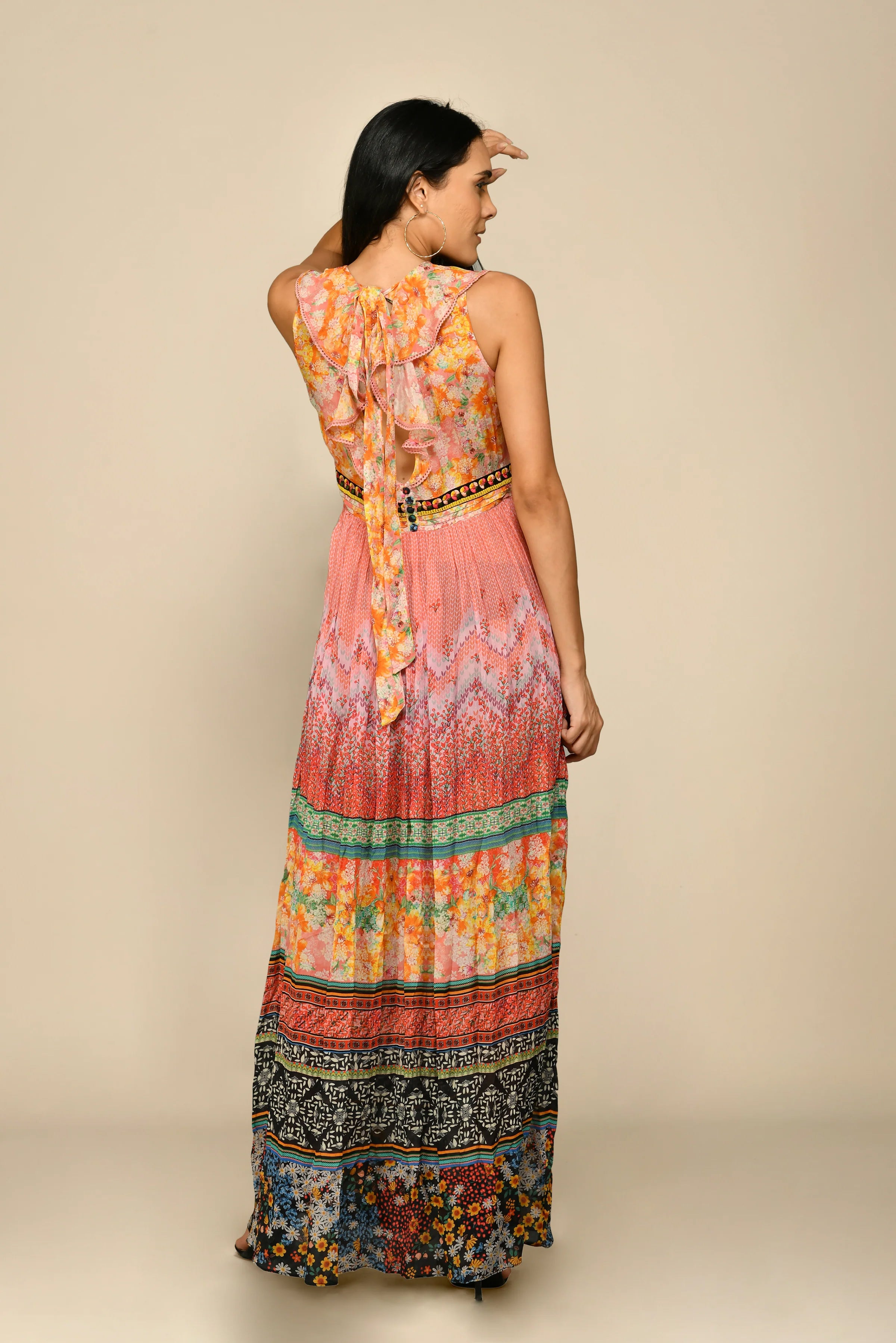 Description : La robe maxi à imprimé floral présente une impression qui est sans effort féminine.