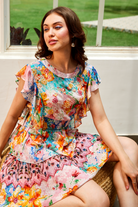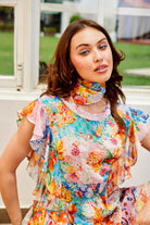 Description : Orné d'imprimés accrocheurs, ce chemisier à volants est un incontournable du printemps.