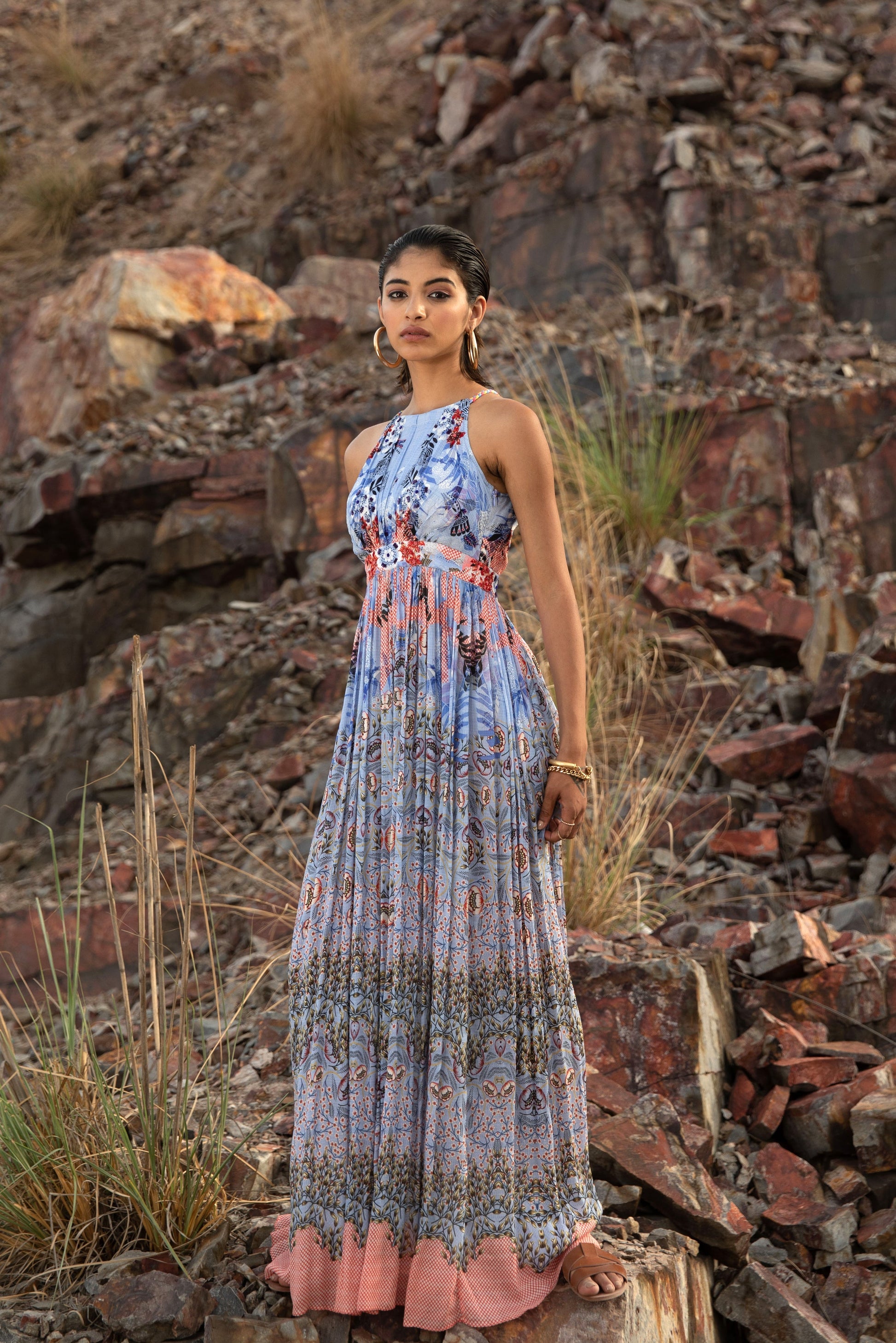 Reinvent And Improvise With The Florid Indigo Halter Maxi Dress To Give You That Chic Girl Look!